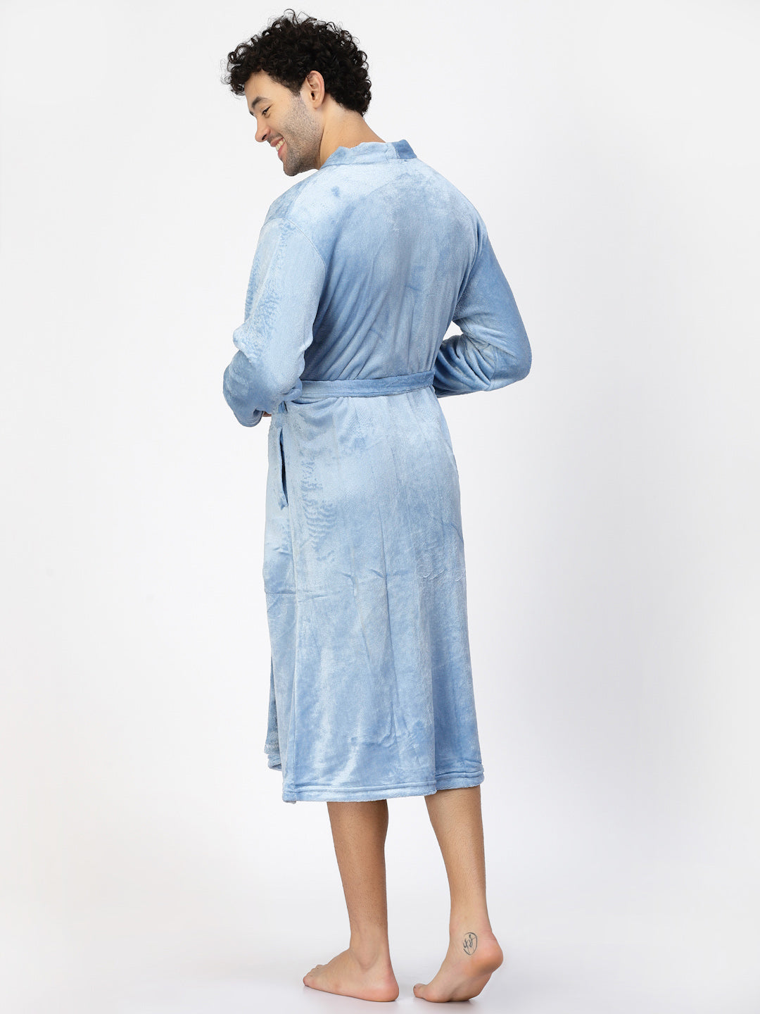 Set Content-Klotthe Men Blue Solid Bath Robe With Belt