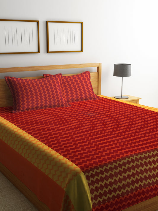 100% Cotton King Size Handwoven Bed Cover with Two Pillow Covers by KLOTTHE® (Red)