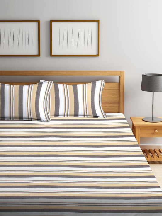 100% Pure Cotton King Size Handwoven Bed Cover with Two Pillow Covers by KLOTTHE® (Brown Striped)