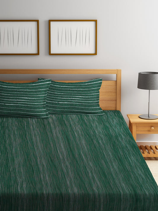 100% Pure Cotton King Size Handwoven Bed Cover with Two Pillow Covers by KLOTTHE® (Green)