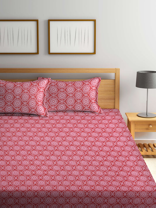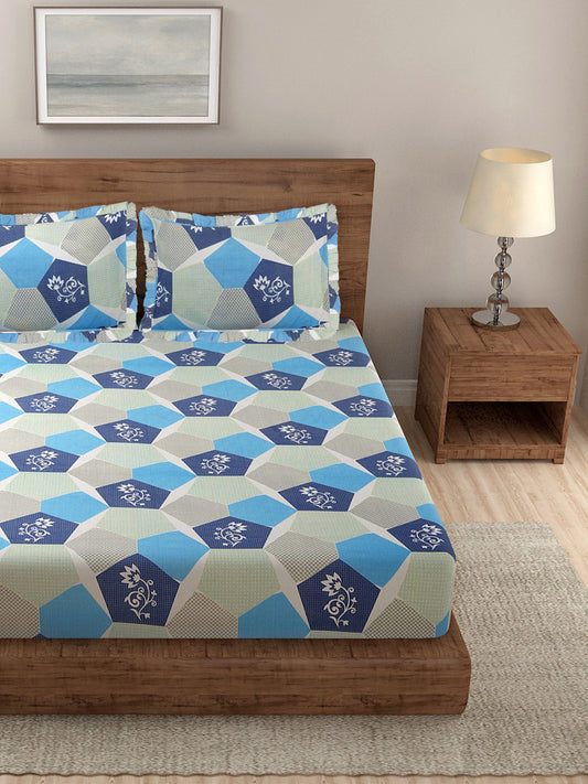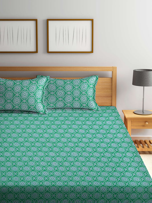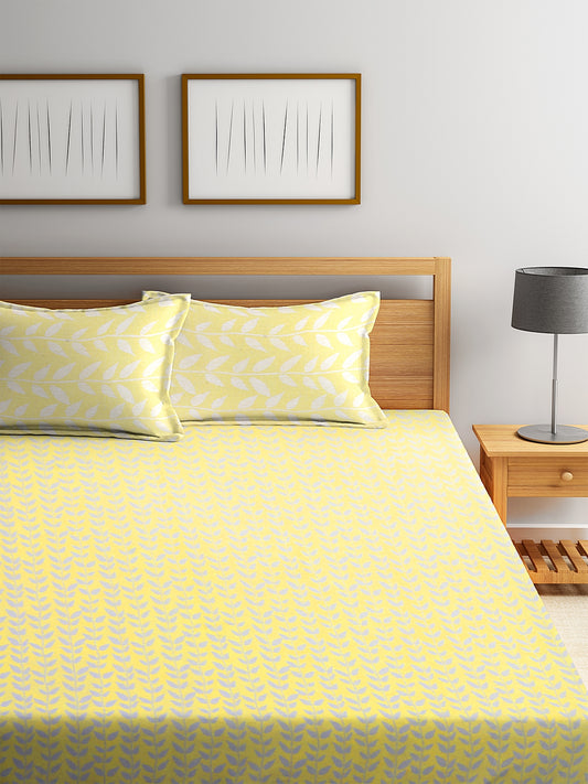 Begie Floral 300 TC Cotton Blend Fitted Double Bedsheet with 2 Pillow Covers