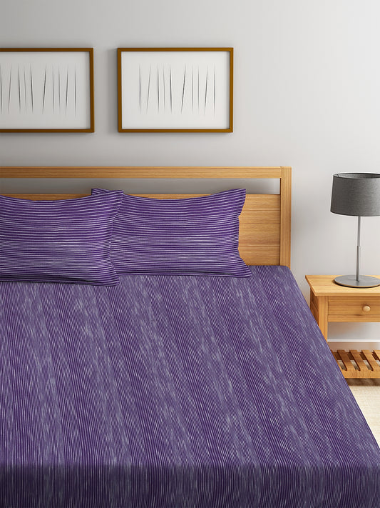 100% Cotton King Size Handwoven Bed Cover with Two Pillow Covers by KLOTTHE® (Violet Striped