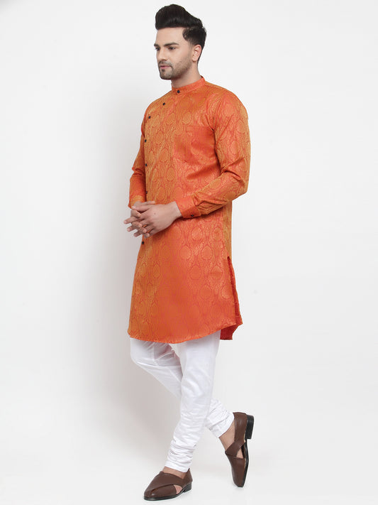 KLOTTHE Orange Viscose Rayon Woven Design Kurtas
