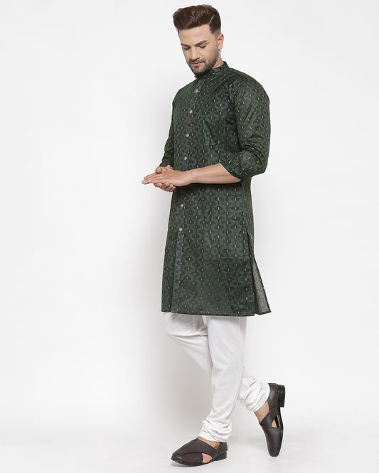 Klotthe Green Lycra Cotton Elastic Solid Slim Fit Formal Gurkha Pant