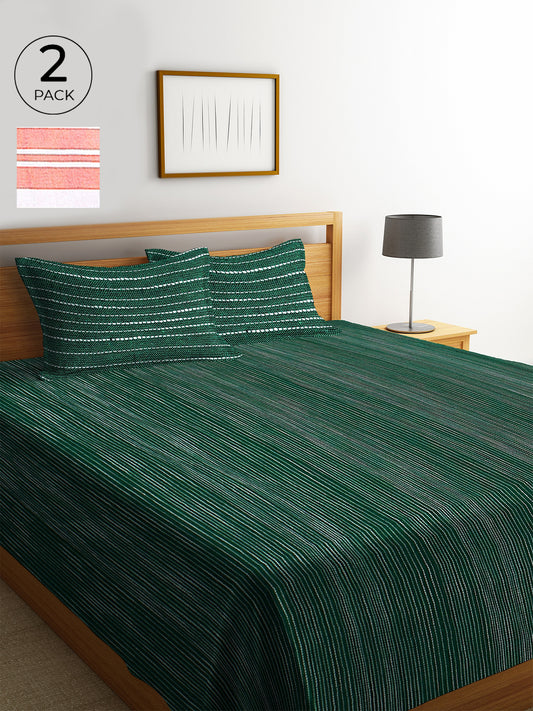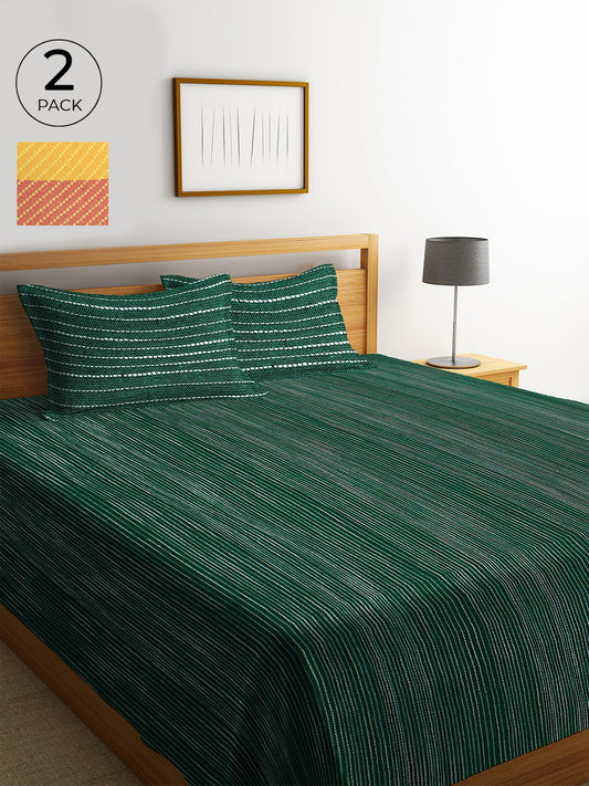 100% Pure Cotton King Size Handwoven Bed Cover with Two Pillow Covers by KLOTTHE® (Green)