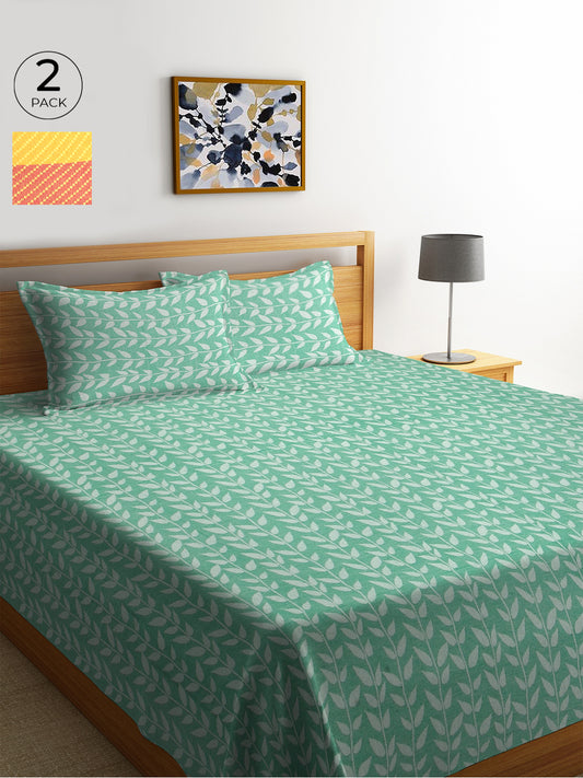 LightGreen Geometric King Size Micro Fiber Filling Double Bedcover with 2 Pillow covers