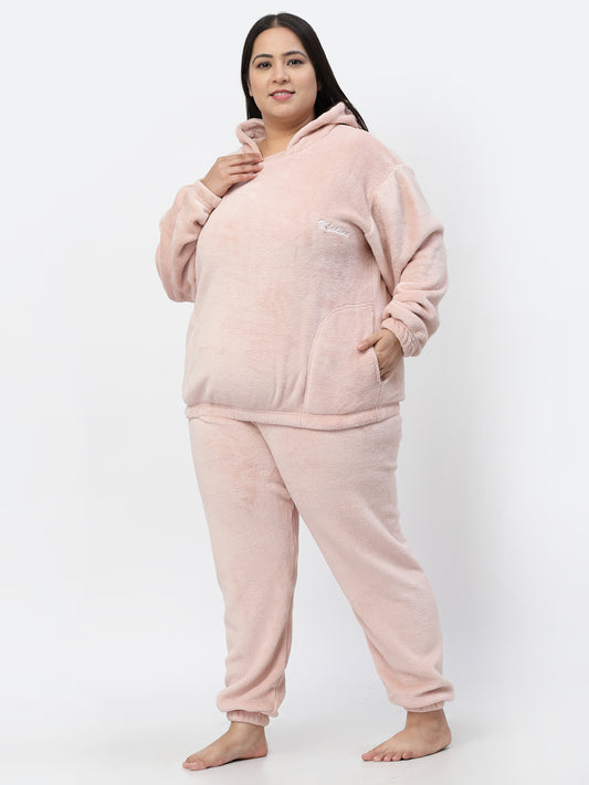 Klotthe Women Pink Wool Blend Solid Hudi Night Suit