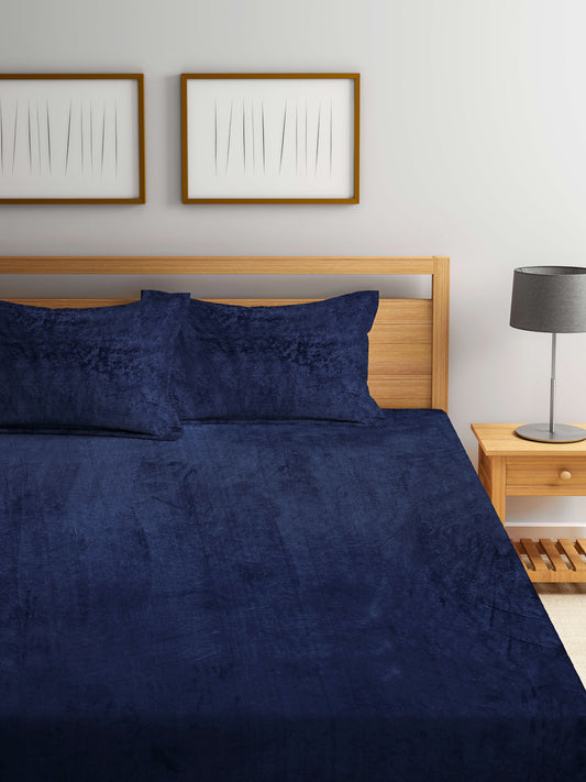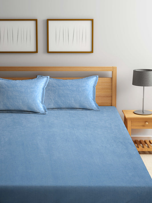 Klotthe Turquoise Solid Woolen Fitted Double Bed Sheet with 2 Pillow Covers