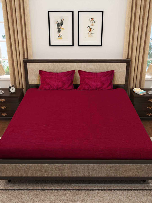 Klotthe Maroon Solid Woolen Fitted Double Bed Sheet with 2 Pillow Covers