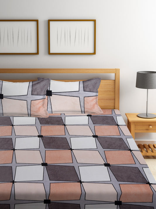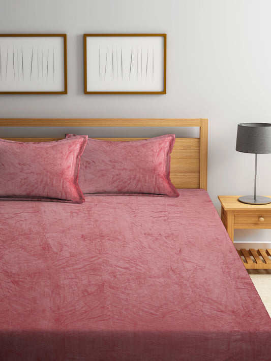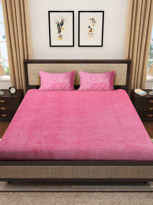 Klotthe Light Pink Solid Woolen Fitted Double Bed Sheet with 2 Pillow Covers