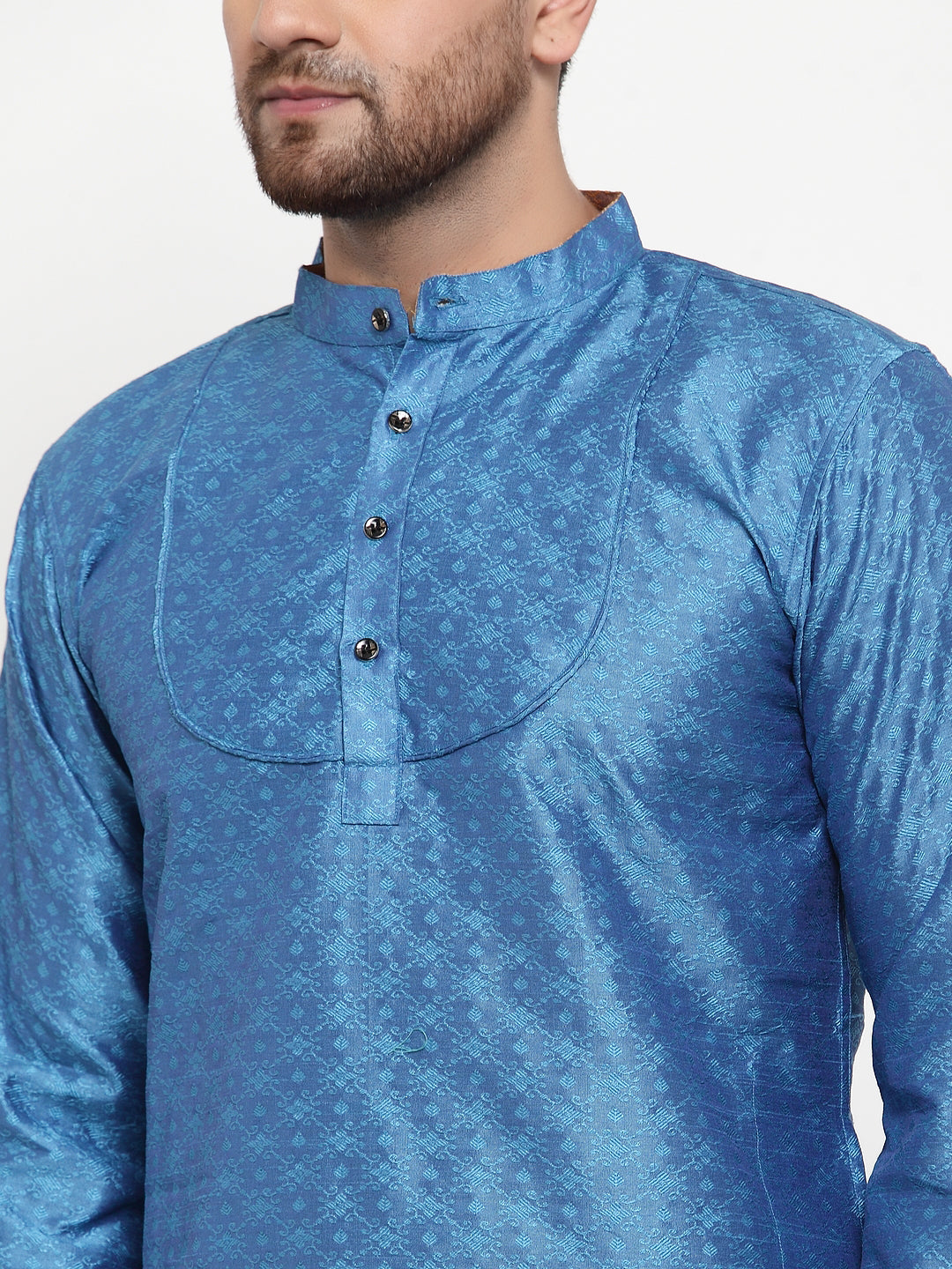 Blue Silk Geometric Party Kurtas