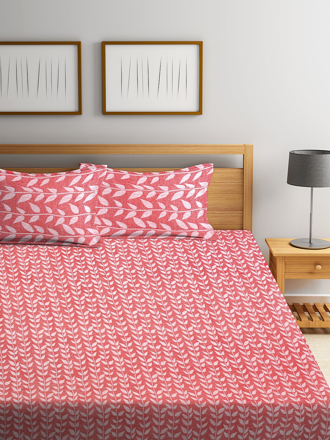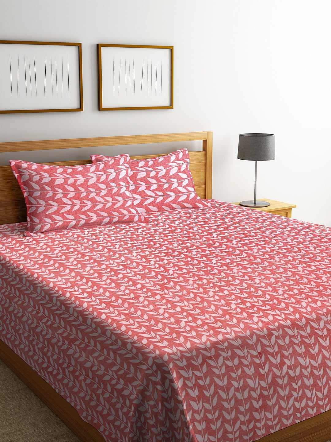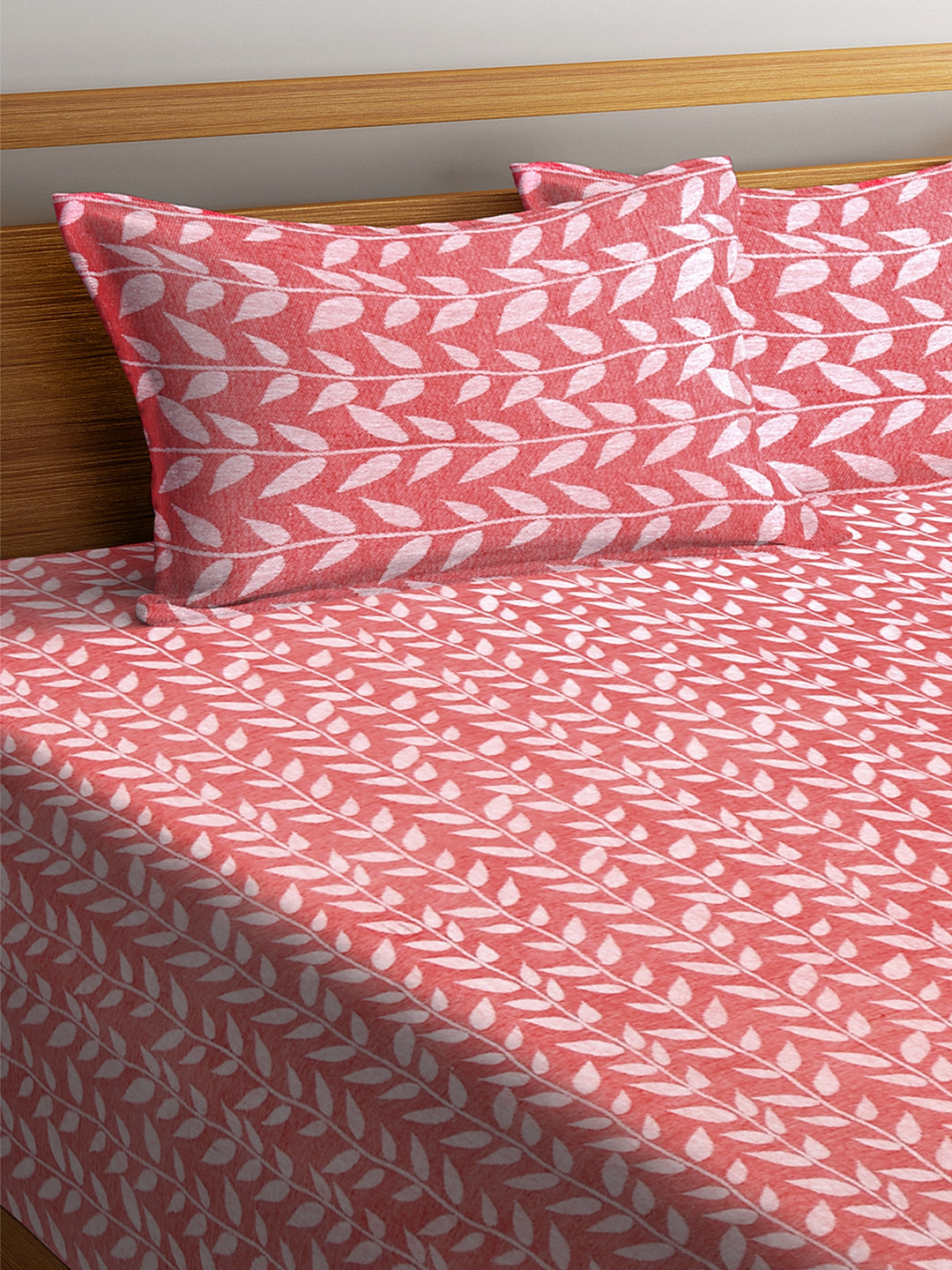 Klotthe Red Woven Design Double Bed Size Cover With 2 Pillow Covers
