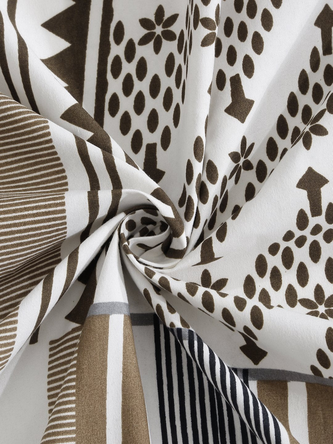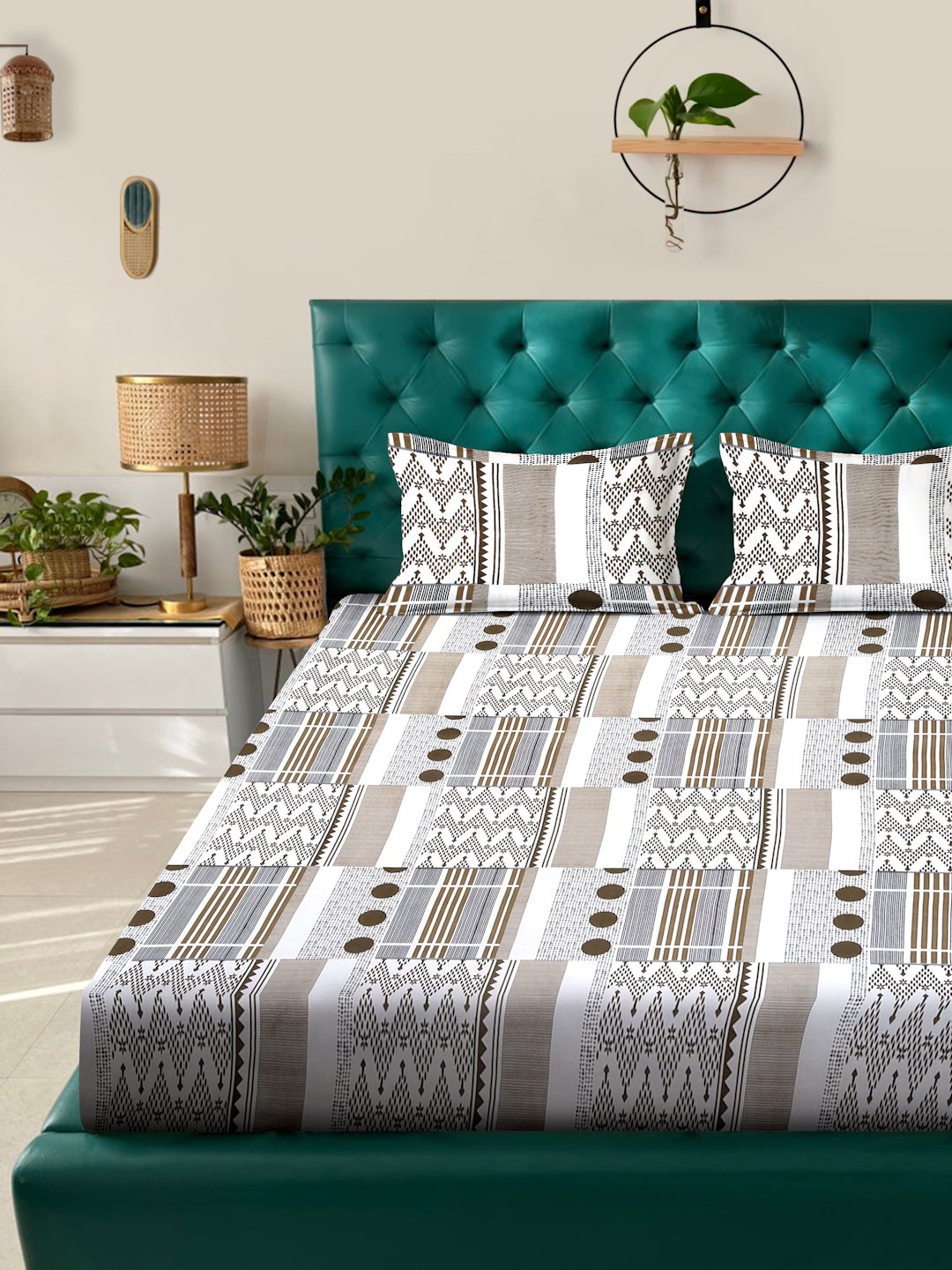 Set Content-White Geometric 300 TC Cotton Blend Double Bedsheet in Book Fold Packing