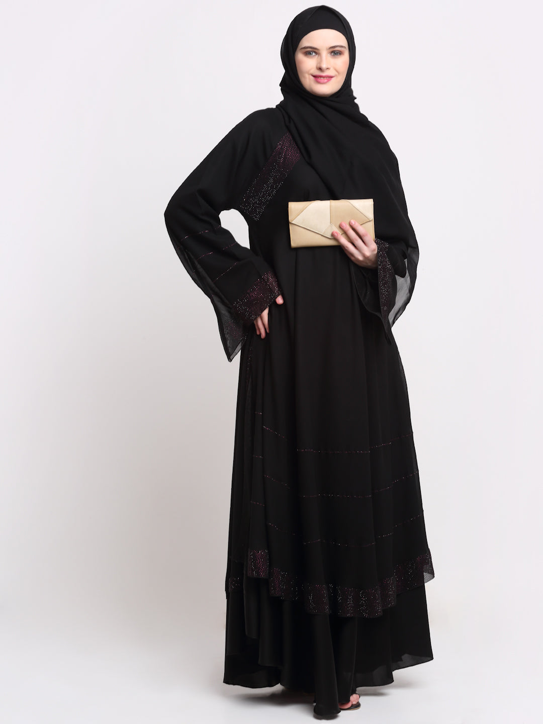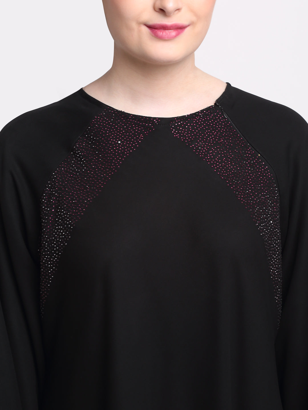Set Content-Klotthe Women Black Solid Burqa with Scarf