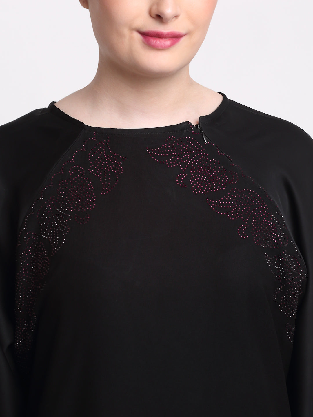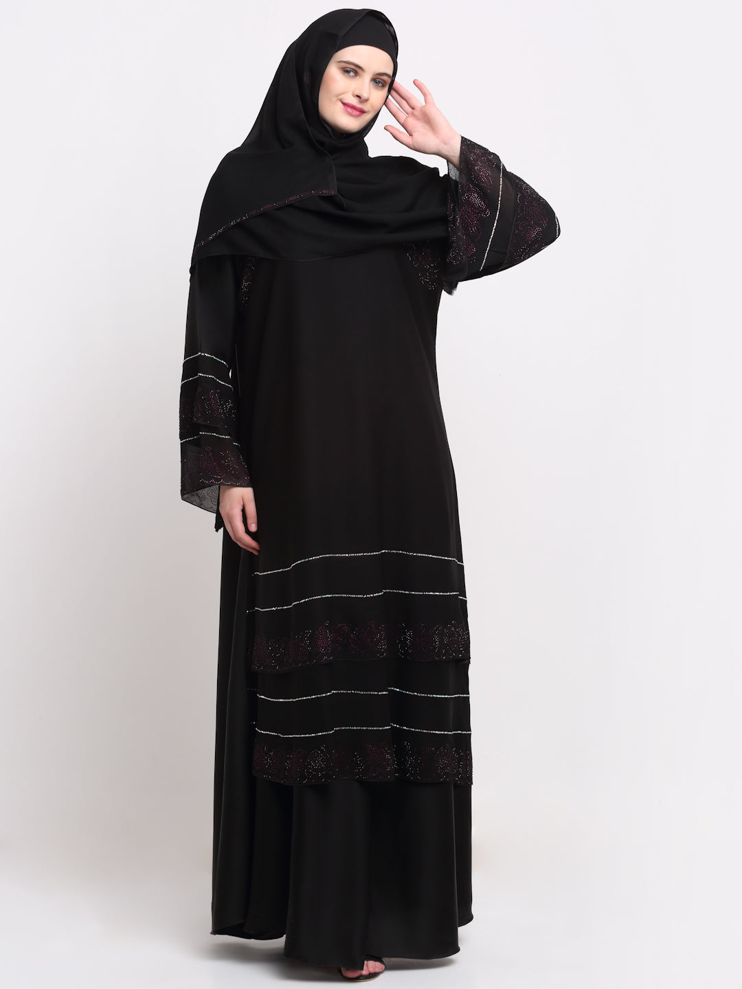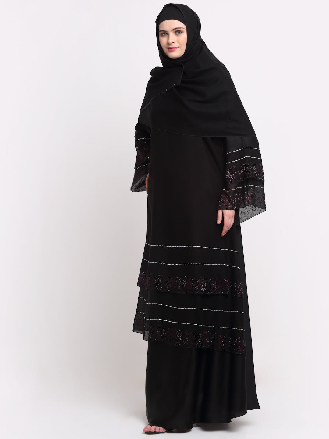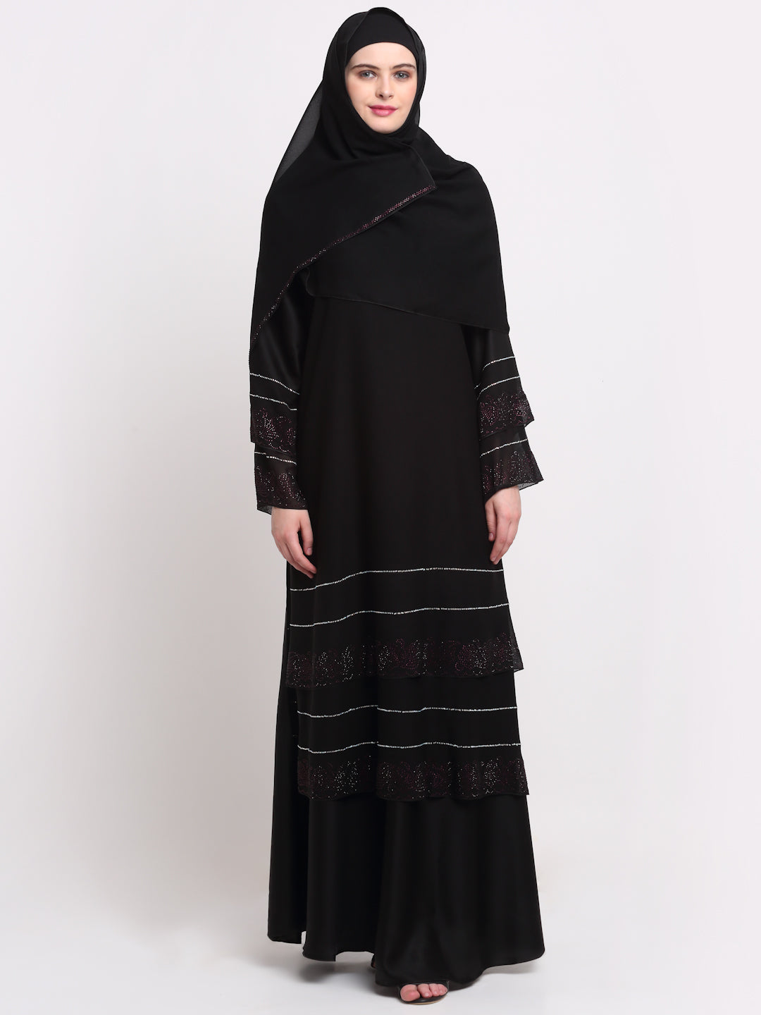 Set Content-Klotthe Women Black Solid Burqa with Scarf