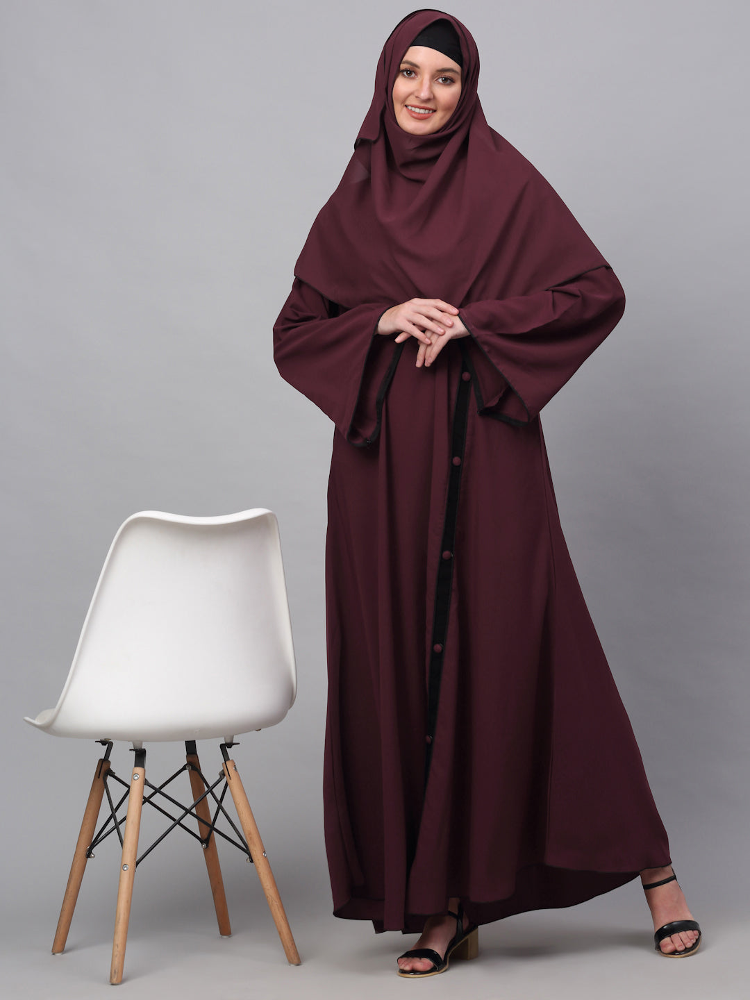 Klotthe Women Maroon Embellished Burqa With Scarves