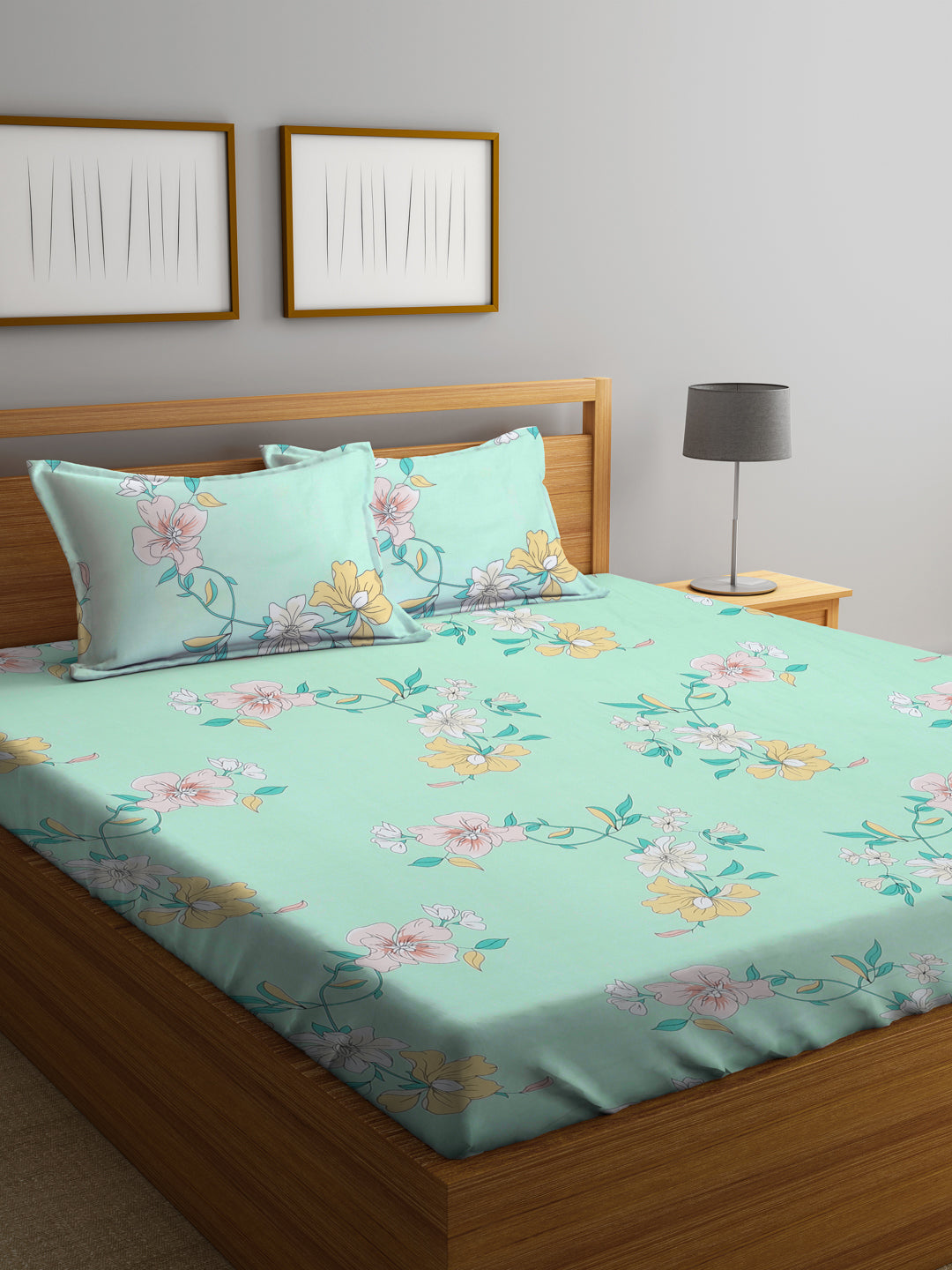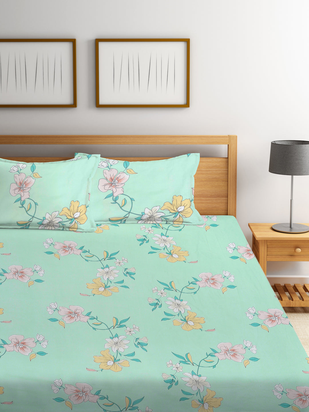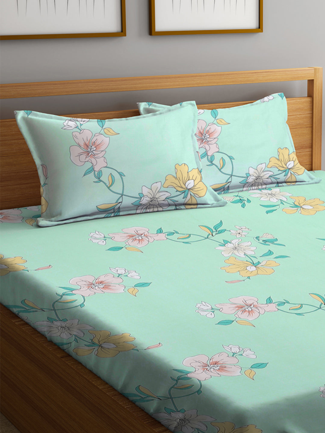 Klotthe Multi Floral 300 TC Cotton Blend Double Bedsheet with 2 Pillow Covers