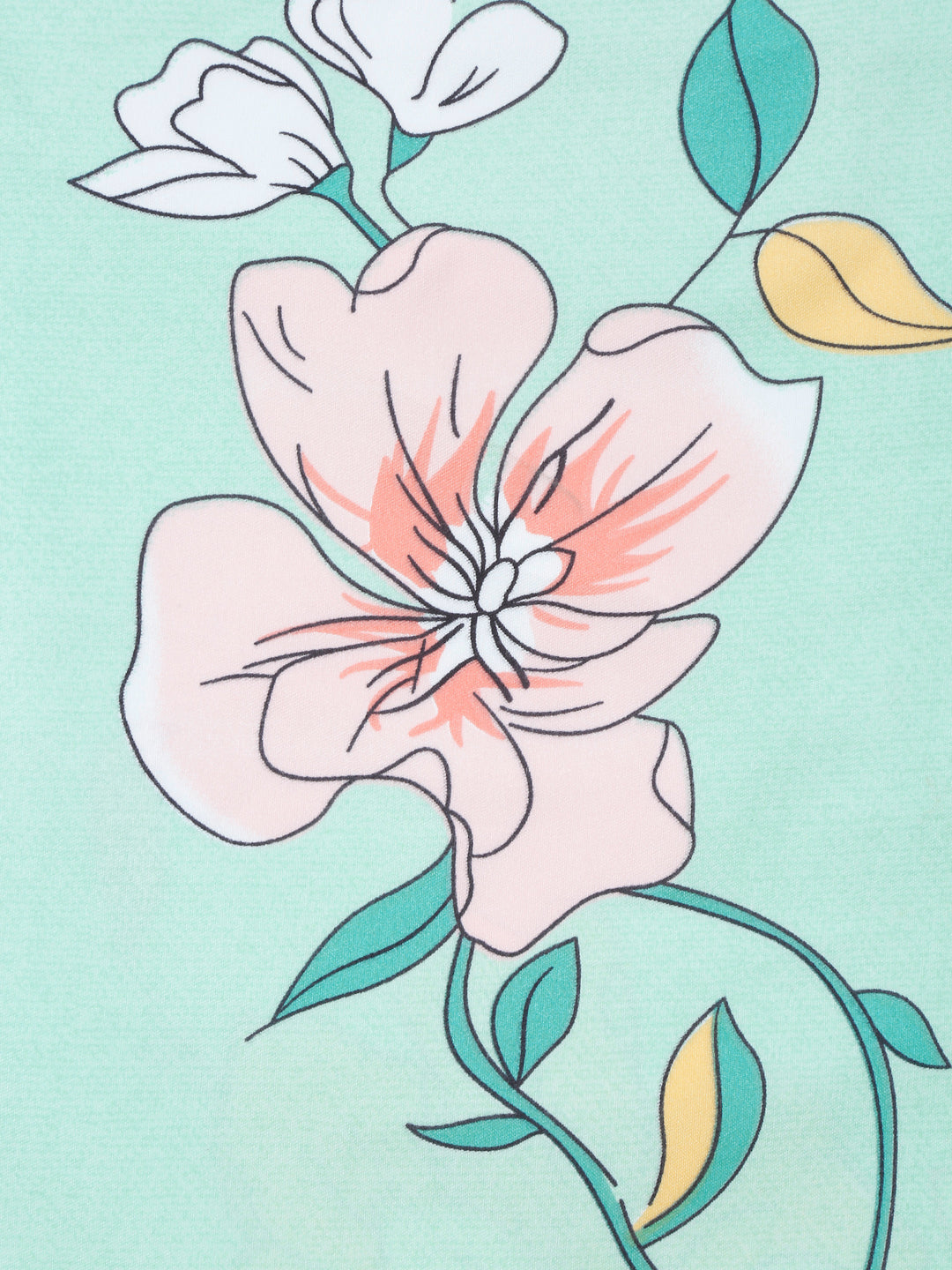 Set Content-Klotthe Multi Floral 300 TC Cotton Blend Double Bedsheet with 2 Pillow Covers