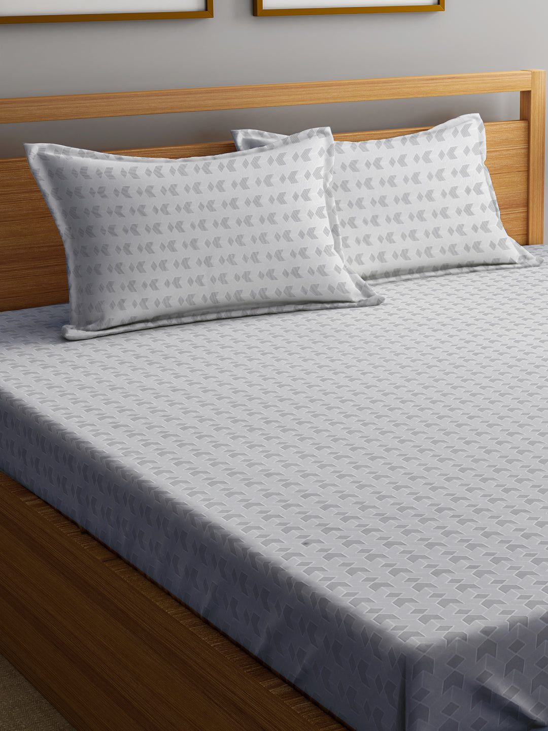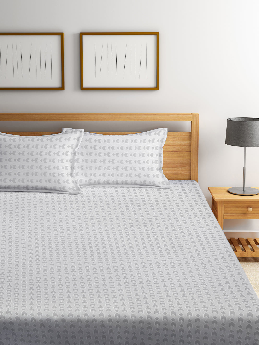 Klotthe Grey Geometric 300 TC Cotton Blend Double Bedsheet with 2 Pillow Covers