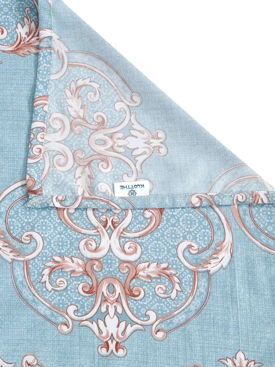 Set Content-SkyBlue Ethnic Motifs 300 TC Cotton Blend Double Bedsheet with 2 Pillow Covers