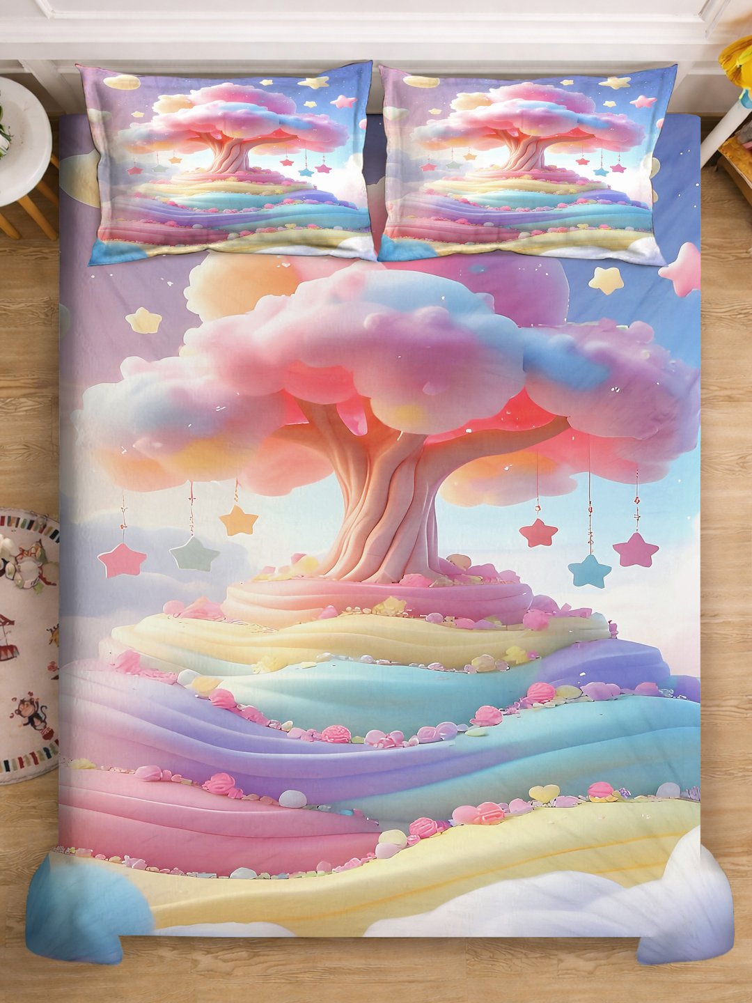 Multi 7D Floral Printed Cotton Blend Double Bedsheet with 2 Pillow Covers