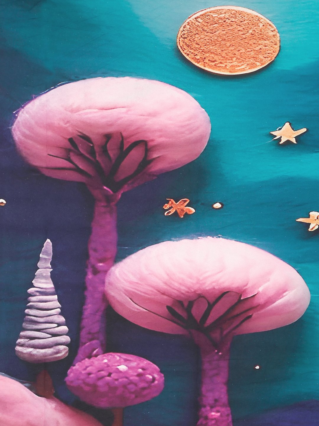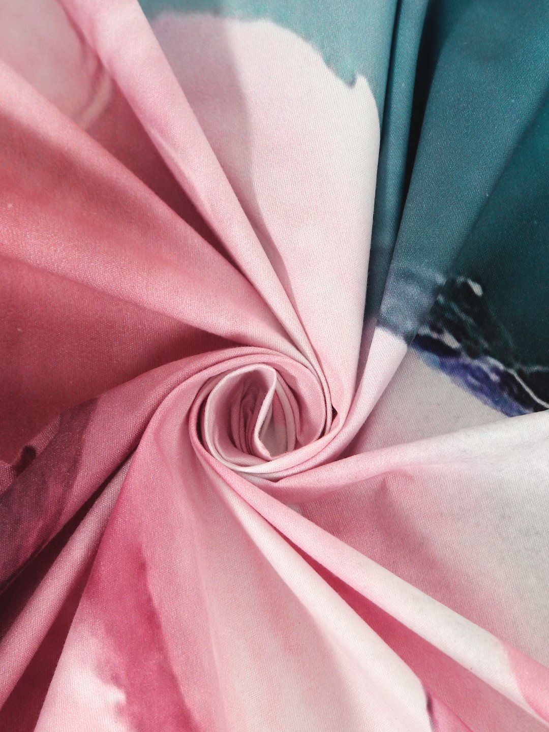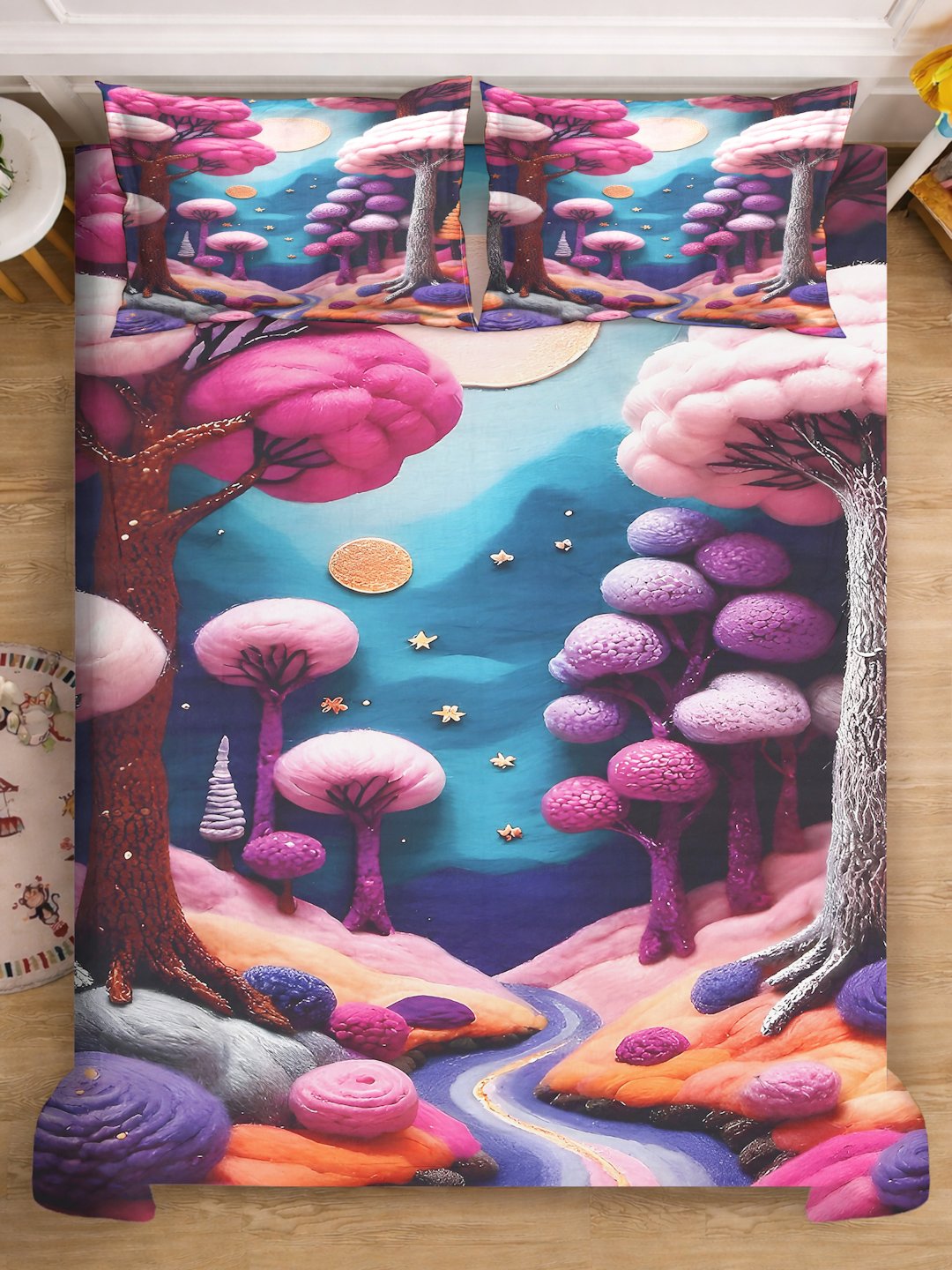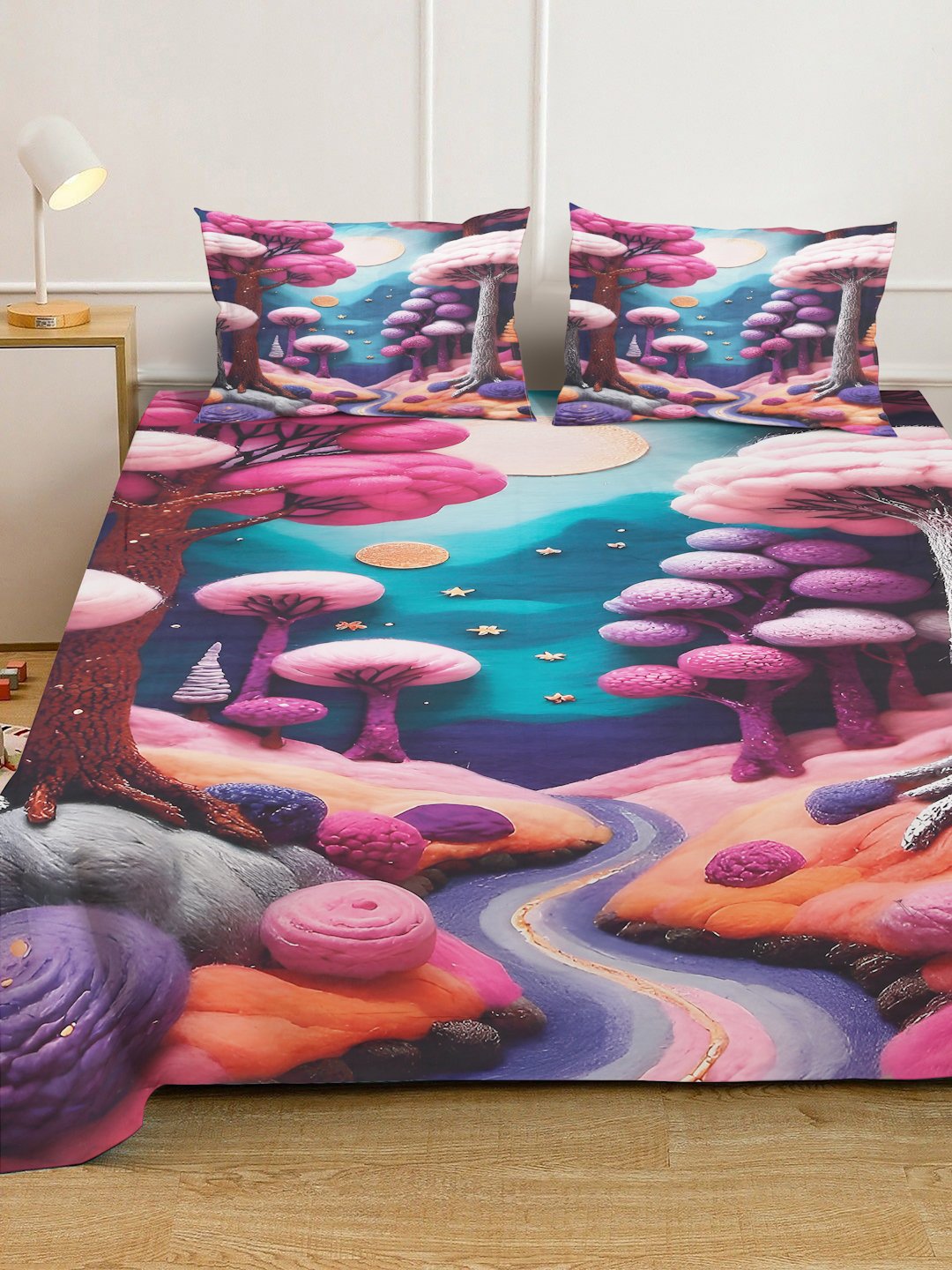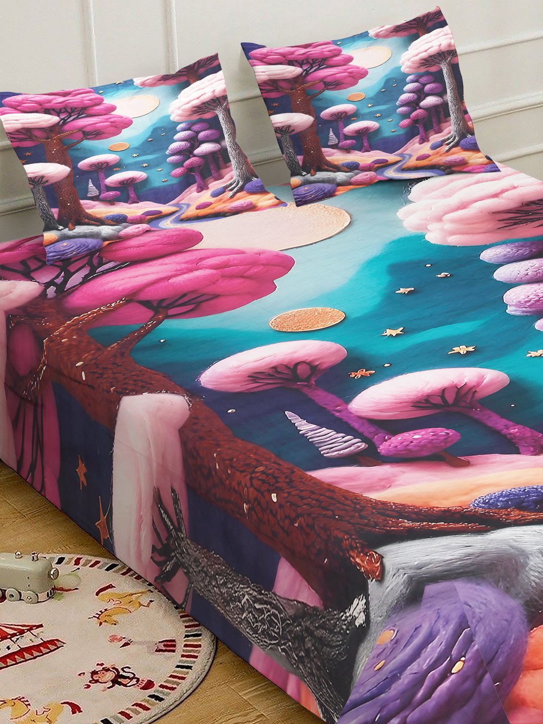 Purple 7D Floral Printed Cotton Blend Double Bedsheet with 2 Pillow Covers