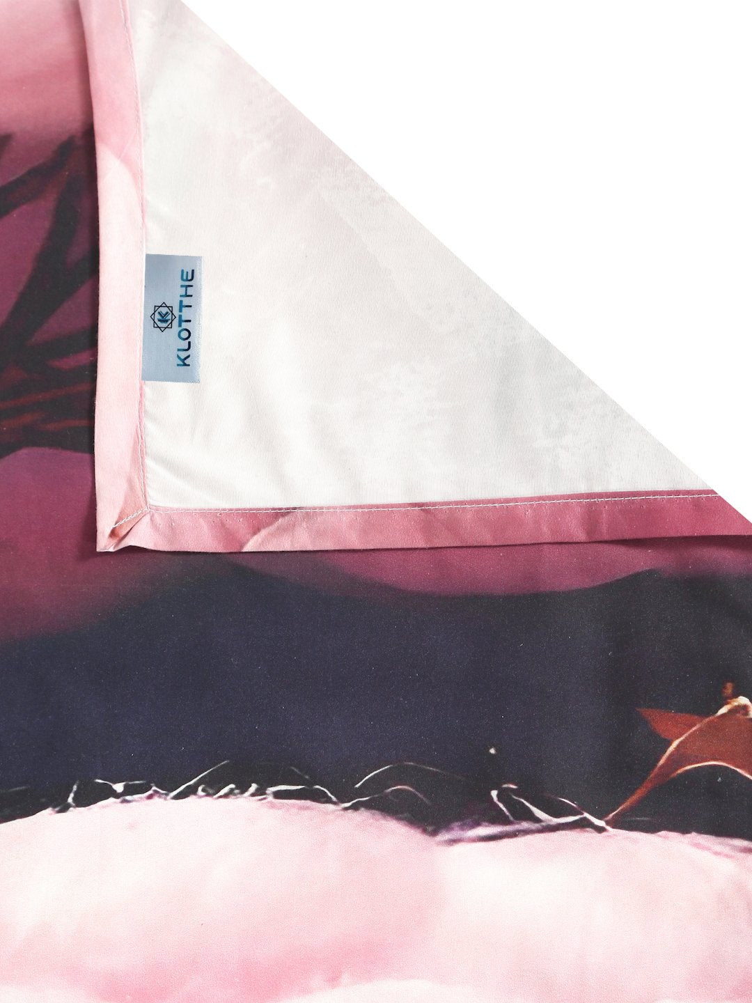 Set Content-Klotthe Purple 7D Floral Printed Cotton Blend Double Bedsheet with 2 Pillow Covers
