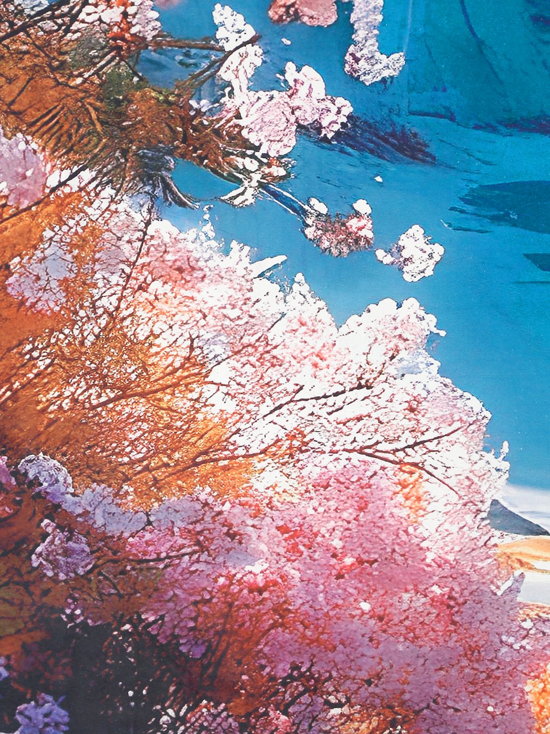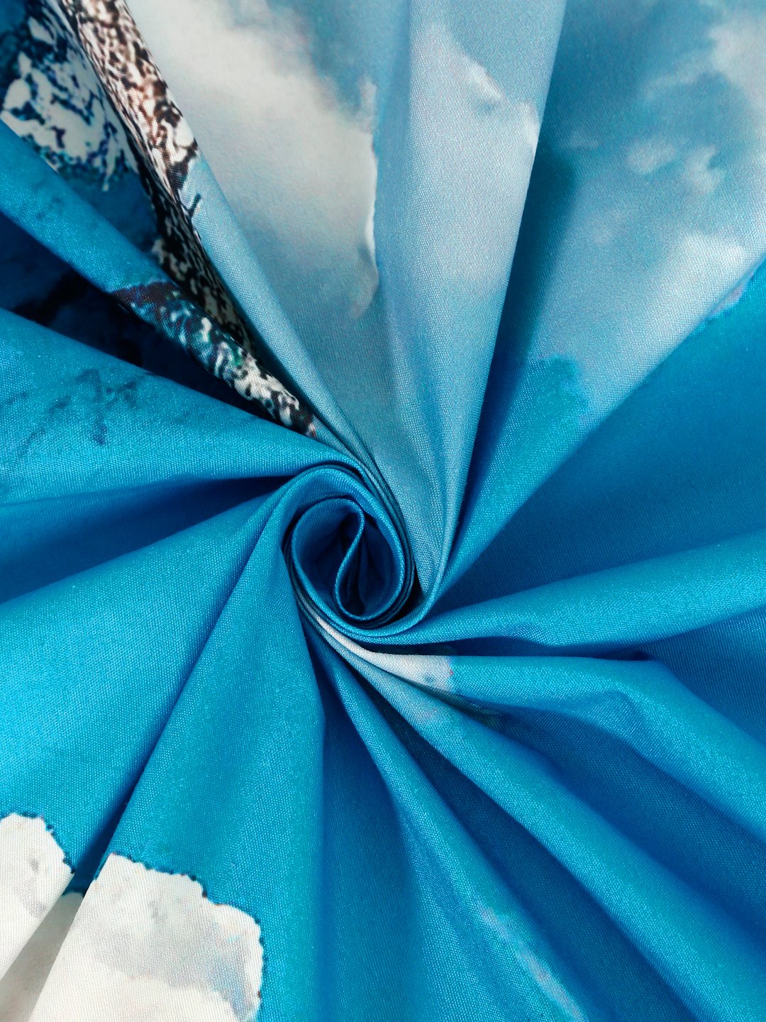 Blue 7D Floral Printed Cotton Blend Double Bedsheet with 2 Pillow Covers