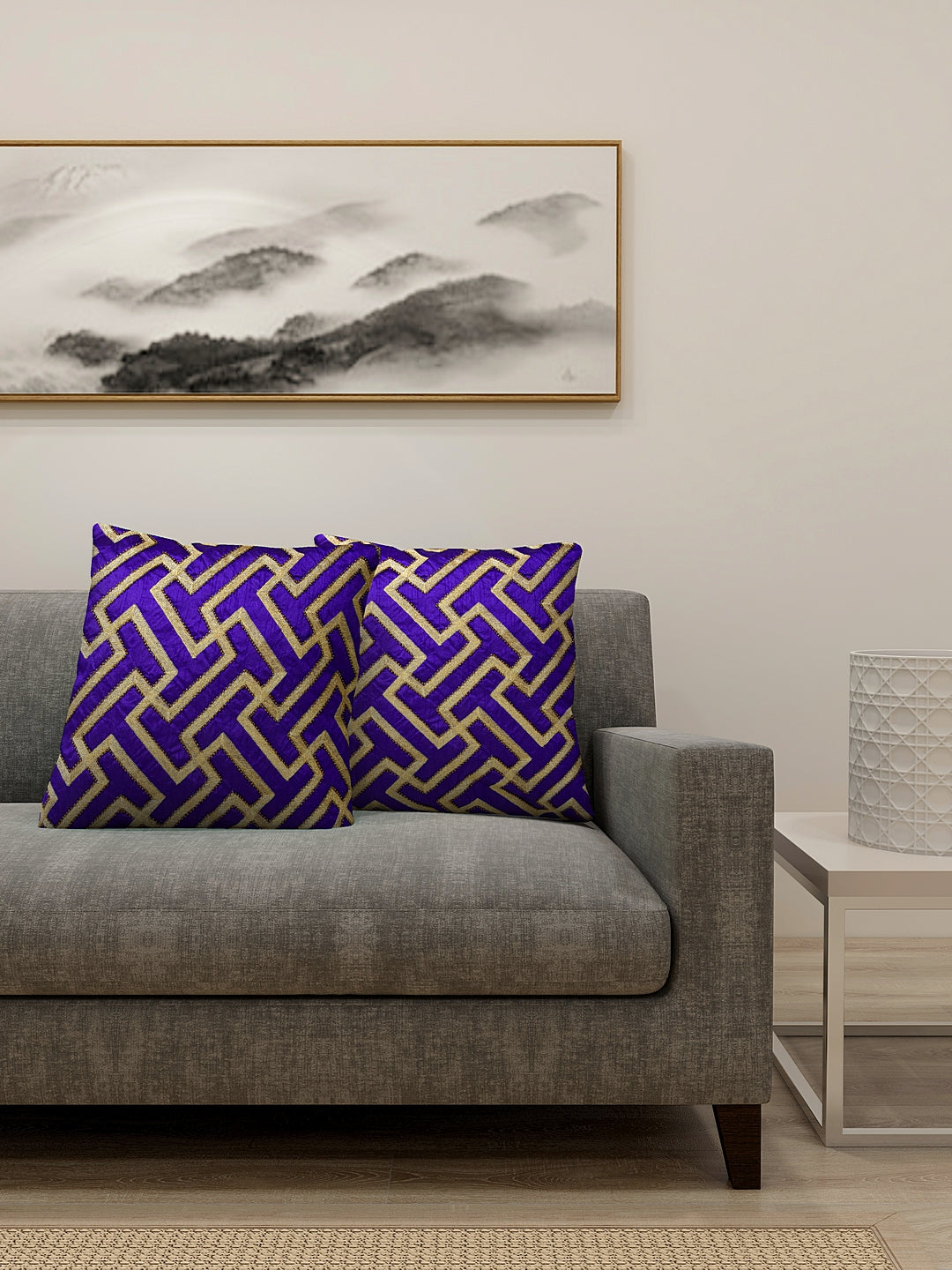 KLOTTHE Set of Two RoyalBlue Poly Cotton Cushion Covers With Microfibre Fillers (40X40 cm)