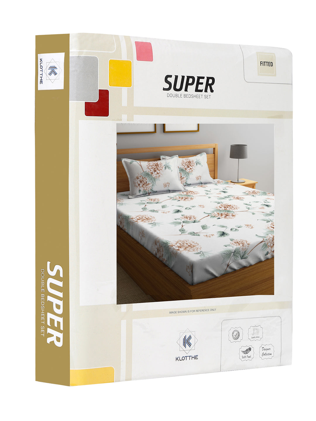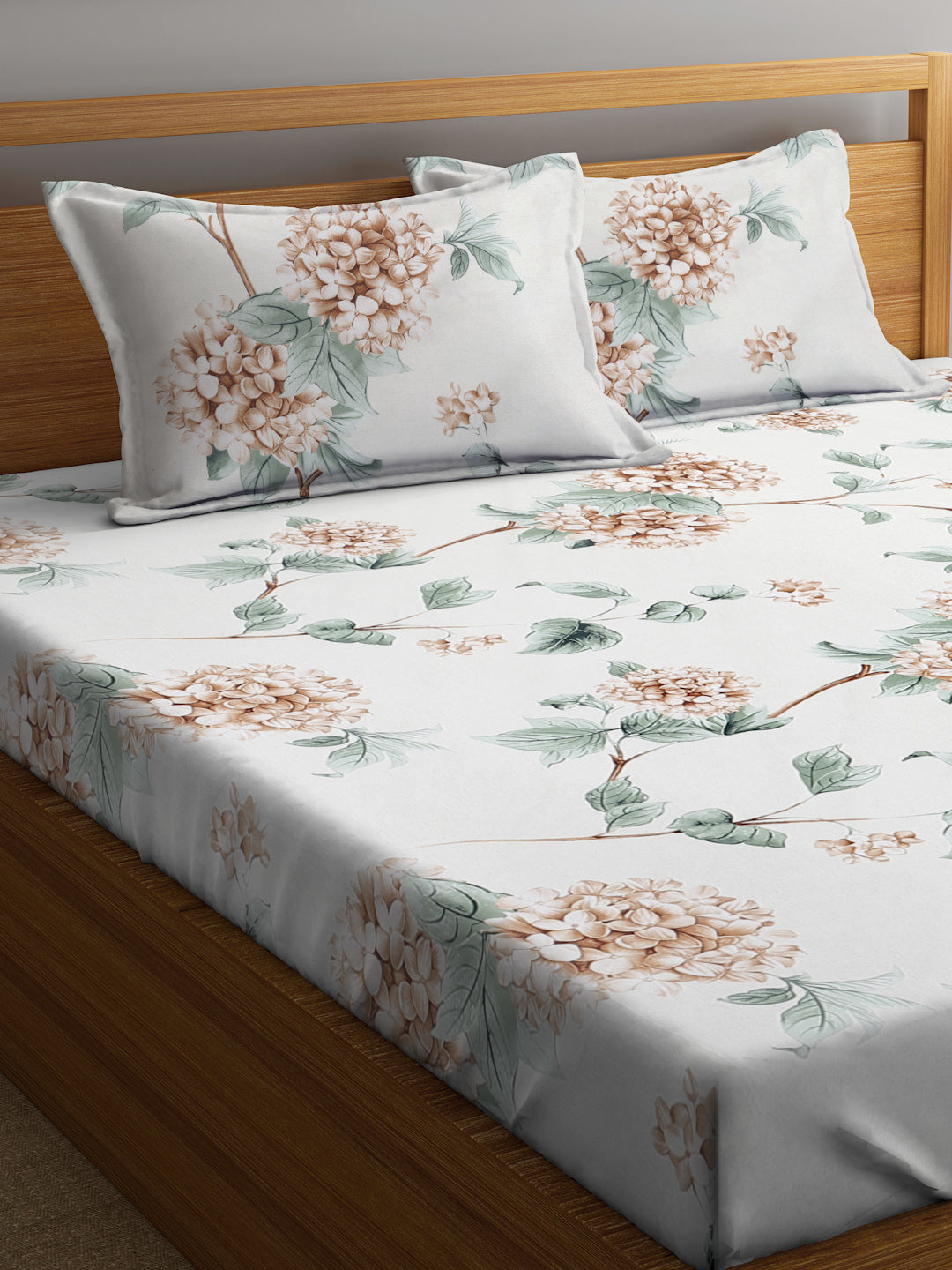 Set Content-Klotthe Multi Floral 300 TC Cotton Blend Fitted Double Bedsheet with 2 Pillow Covers in Book Fold Packing