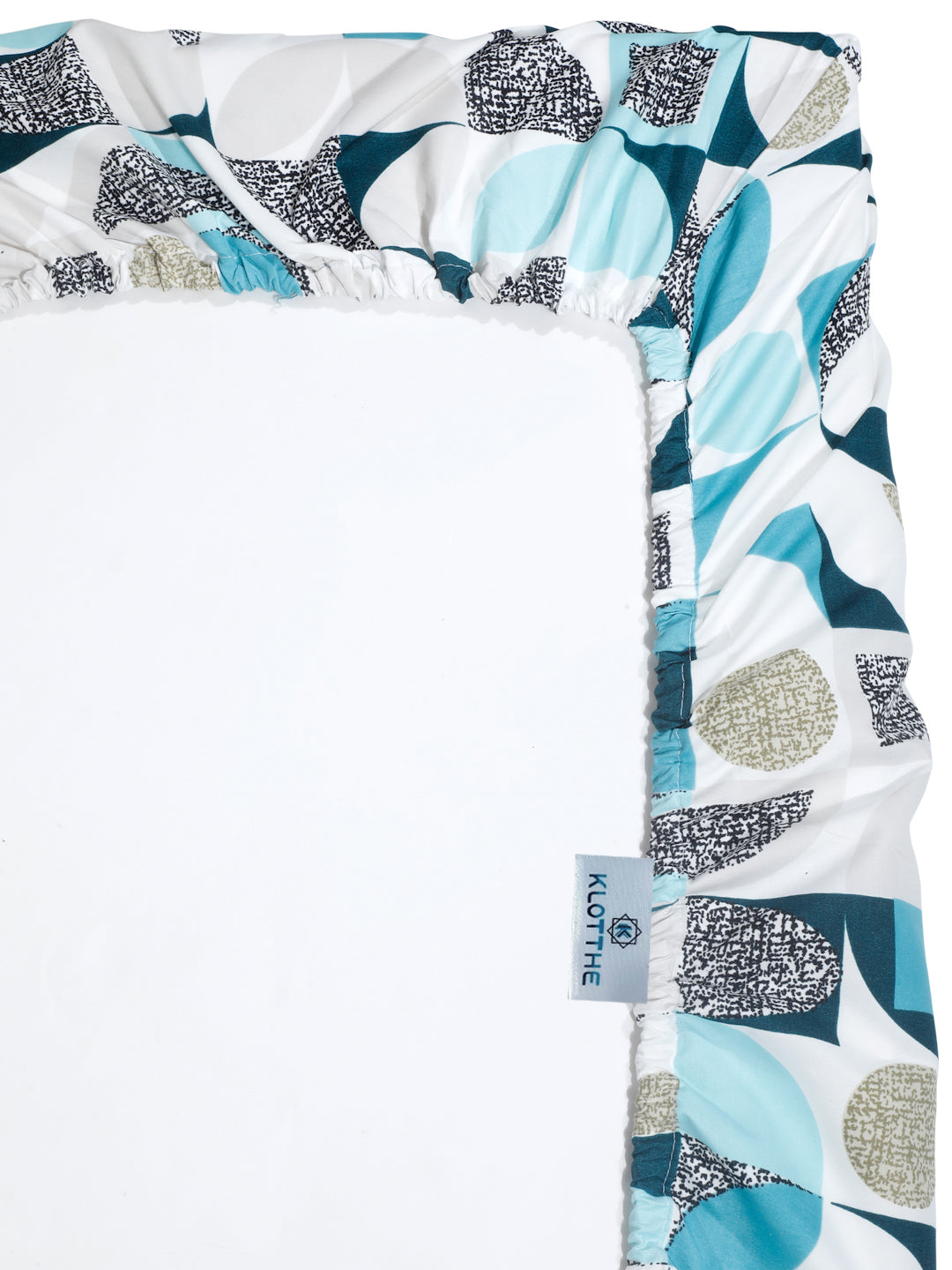Set Content-Klotthe White Geometric 300 TC Cotton Blend Fitted Double Bedsheet with 2 Pillow Covers