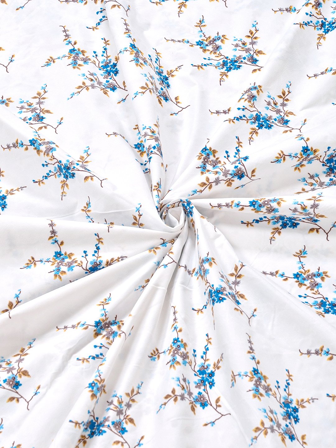 White Floral 300 TC Cotton Blend Fitted Double Bedsheet with 2 Pillow Covers