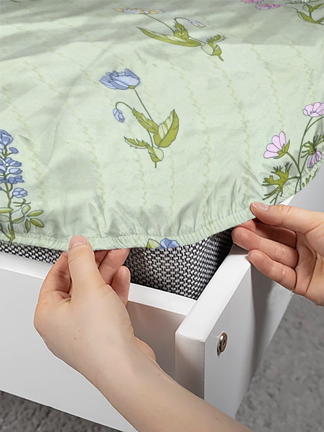 Green Floral 300 TC Cotton Blend Fitted Double Bedsheet with 2 Pillow Covers