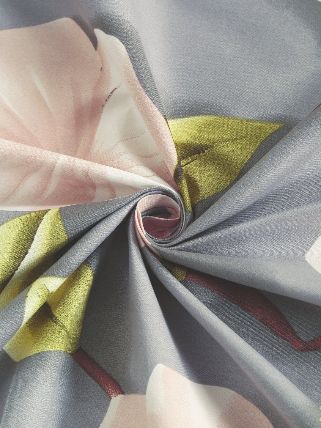 Set Content-Klotthe Grey Floral 7D King Size Cotton Blend Fitted Double Bedsheet with 2 Pillow Covers Covers