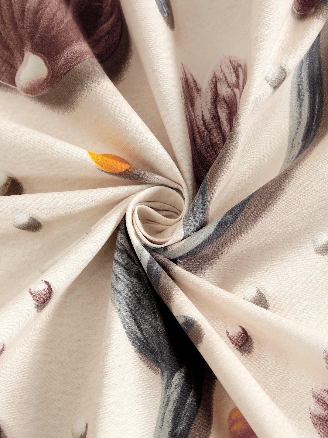 Cream Floral 7D King Size Cotton Blend Fitted Double Bedsheet with 2 Pillow Covers