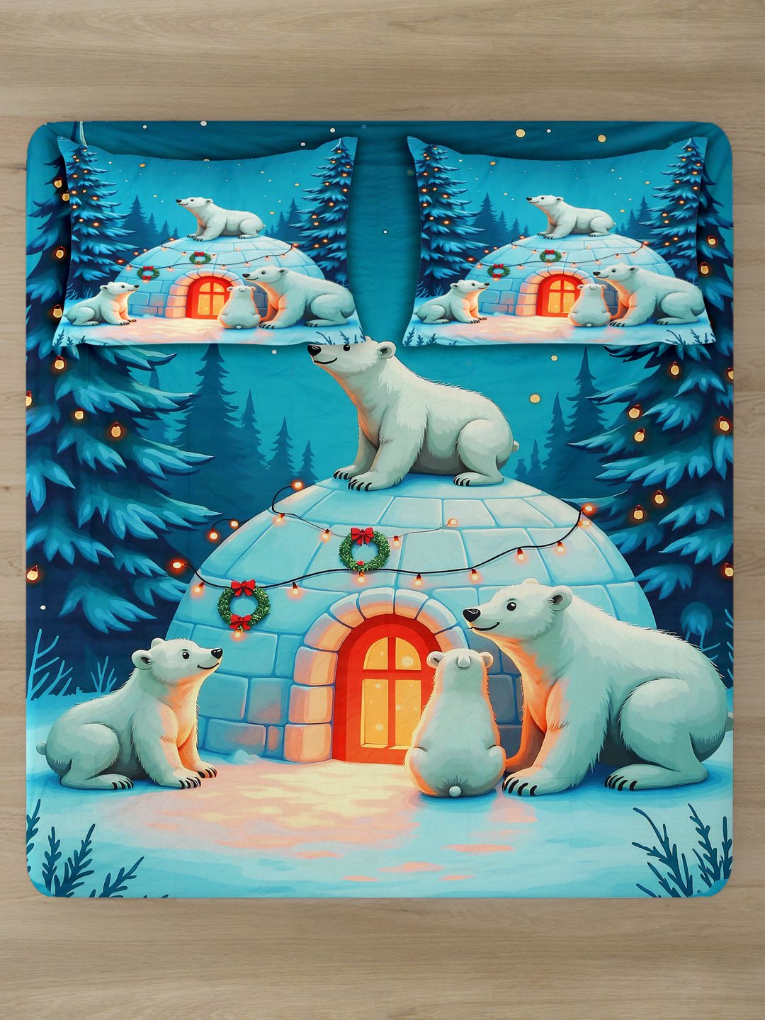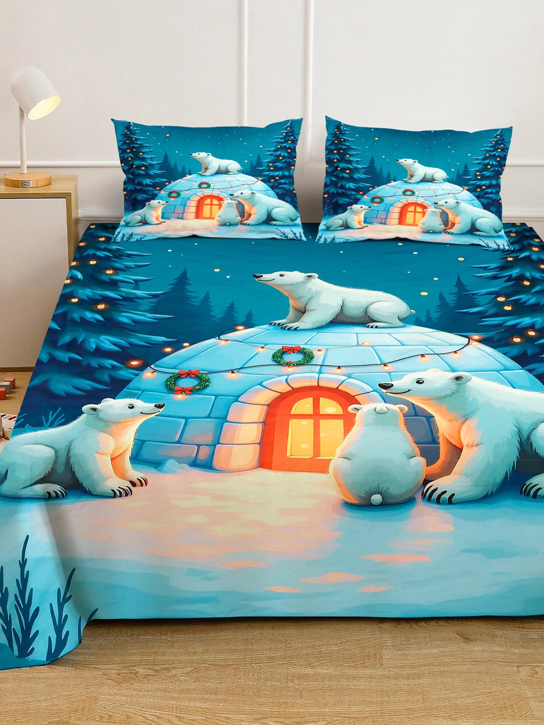 Blue Cartoon Characters 7D King Size Cotton Blend Fitted Double Bedsheet with 2 Pillow Covers