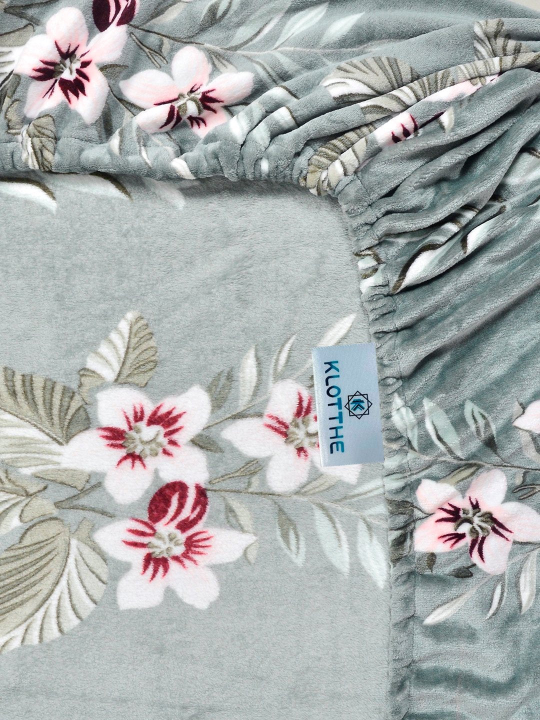 Set Content-Klotthe Green Floral Woolen Fitted Double Bedsheet with 2 Pillow Covers