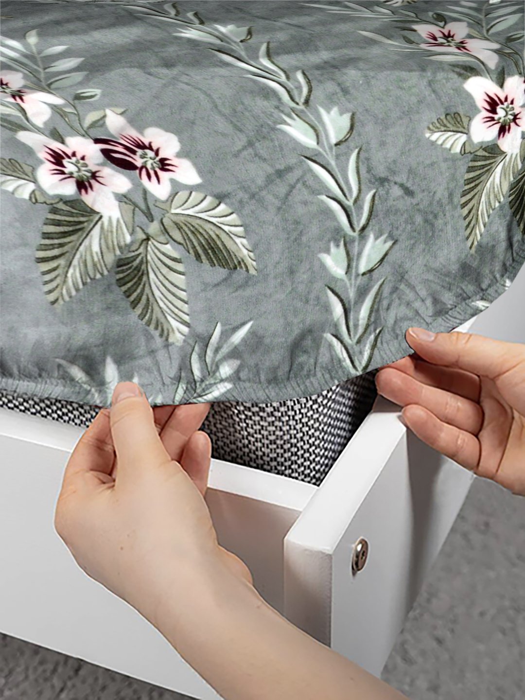 Green Floral Fitted Woolen Fitted Double Bedsheet with 2 Pillow Covers