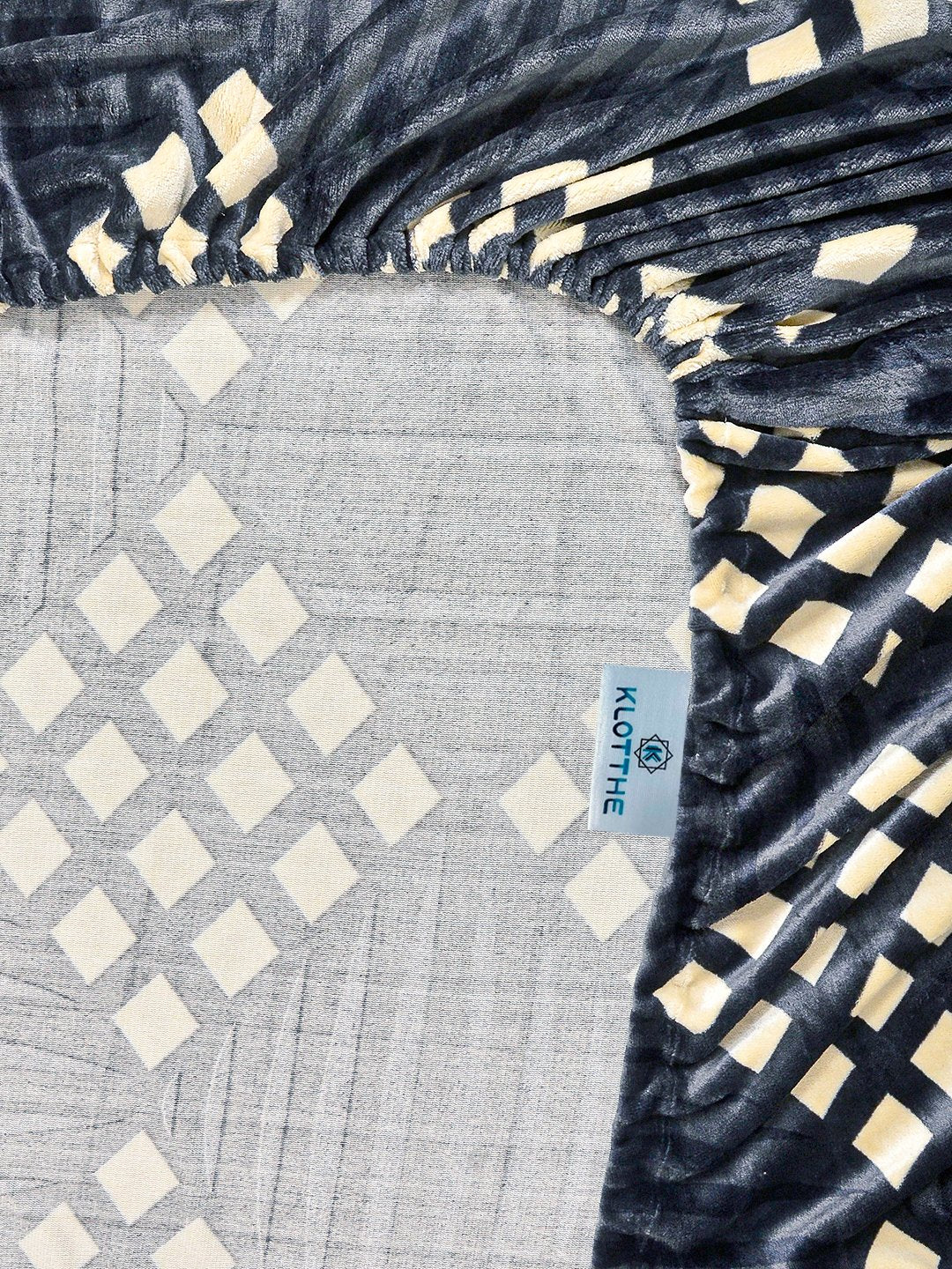 Grey Geometric Super King Woolen Fitted Double Bedsheet with 2 Pillow Covers