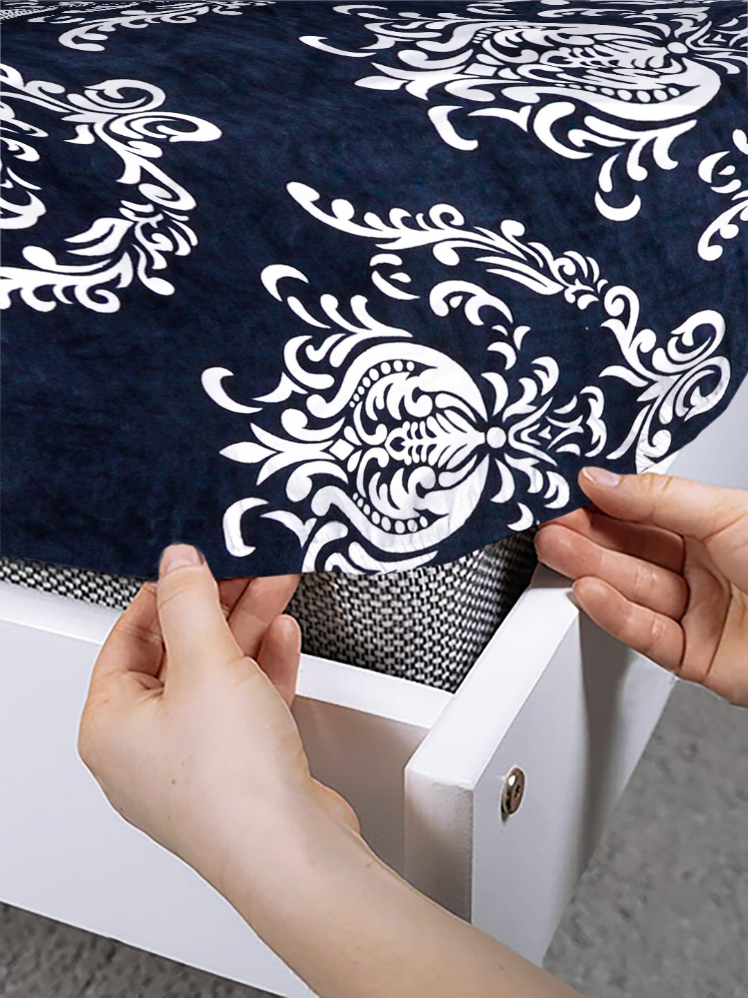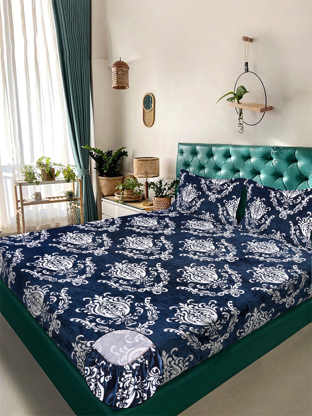 Blue Floral Super King Woolen Fitted Double Bedsheet with 2 Pillow Covers