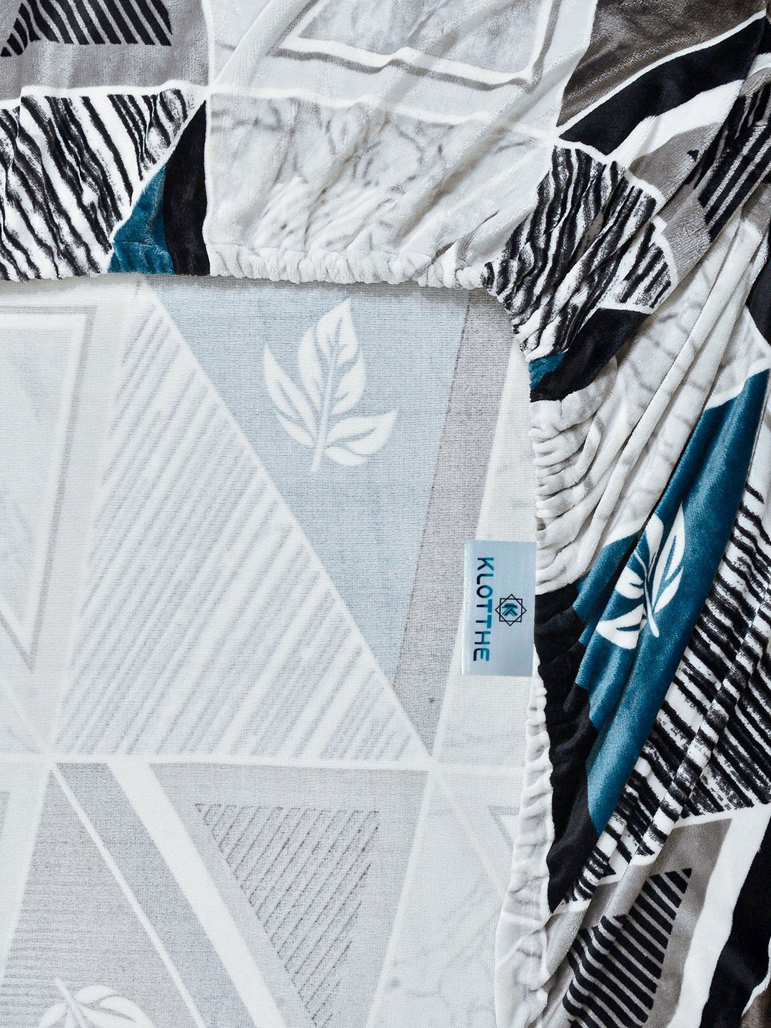 Set Content-Klotthe Multi Geometric Super King Woolen Fitted Double Bedsheet with 2 Pillow Covers