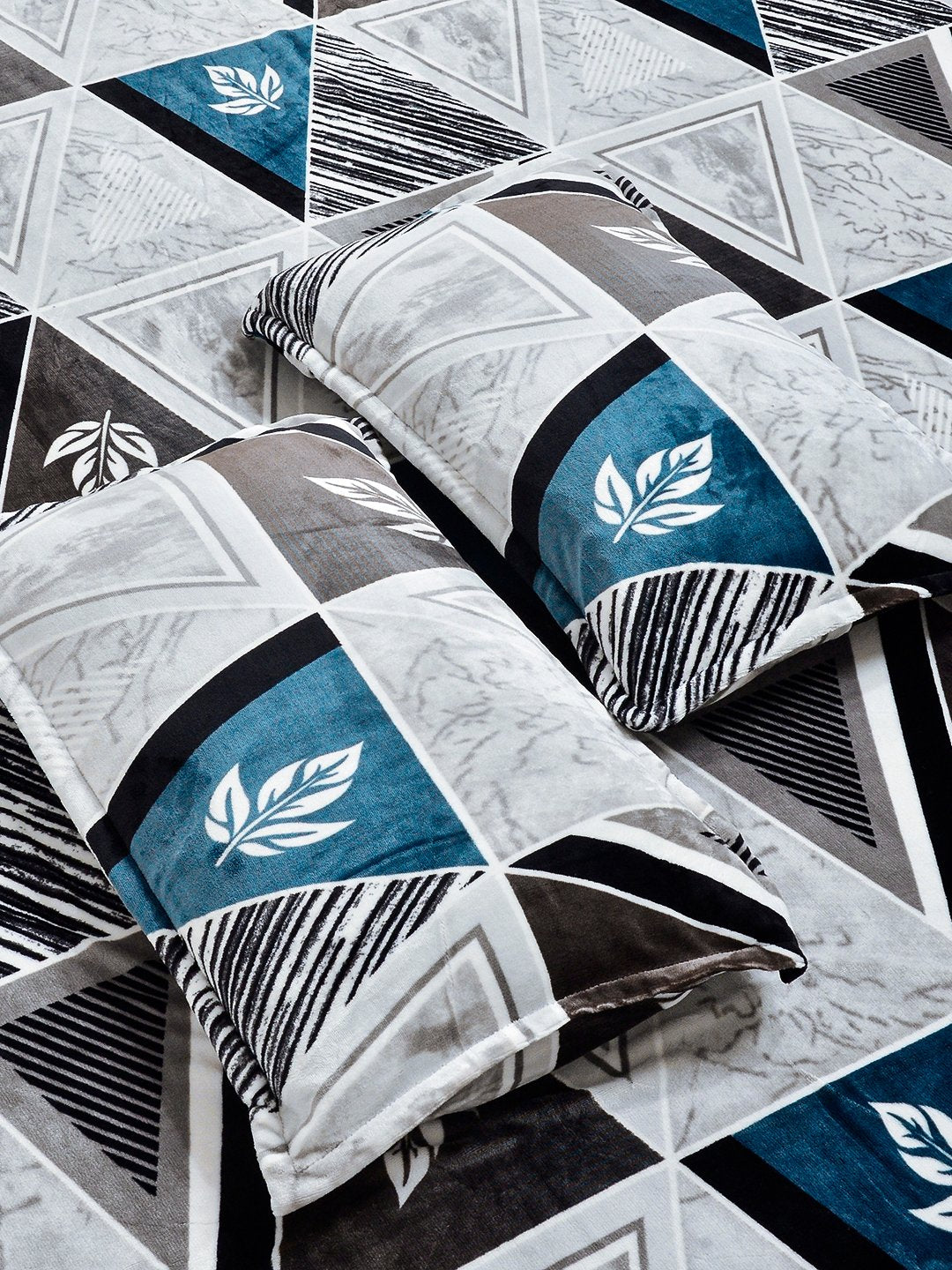 Multi Geometric Super King Woolen Fitted Double Bedsheet with 2 Pillow Covers