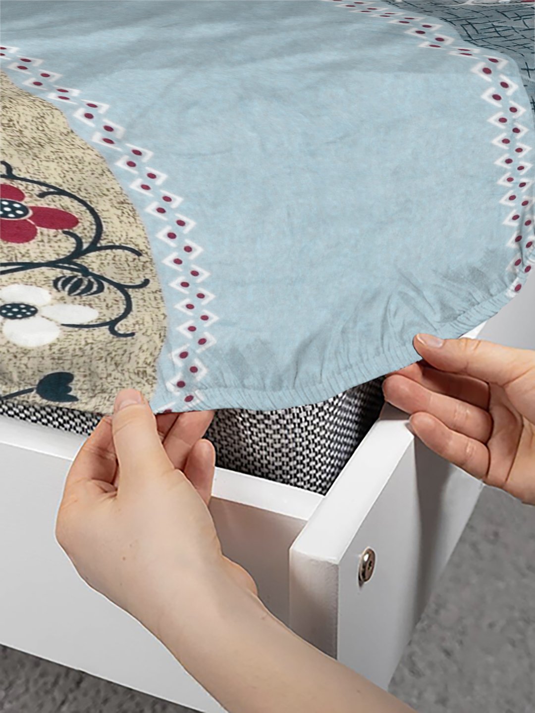 Set Content-Klotthe Multi Floral Fitted Woolen Double Bedsheet with 2 Pillow Covers