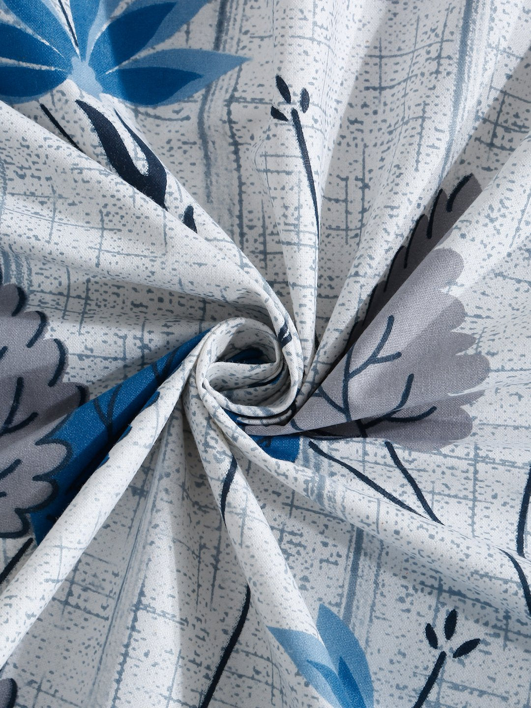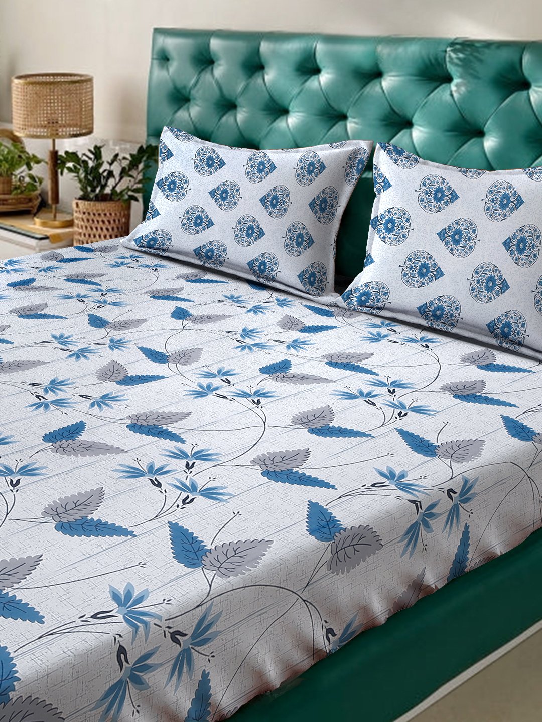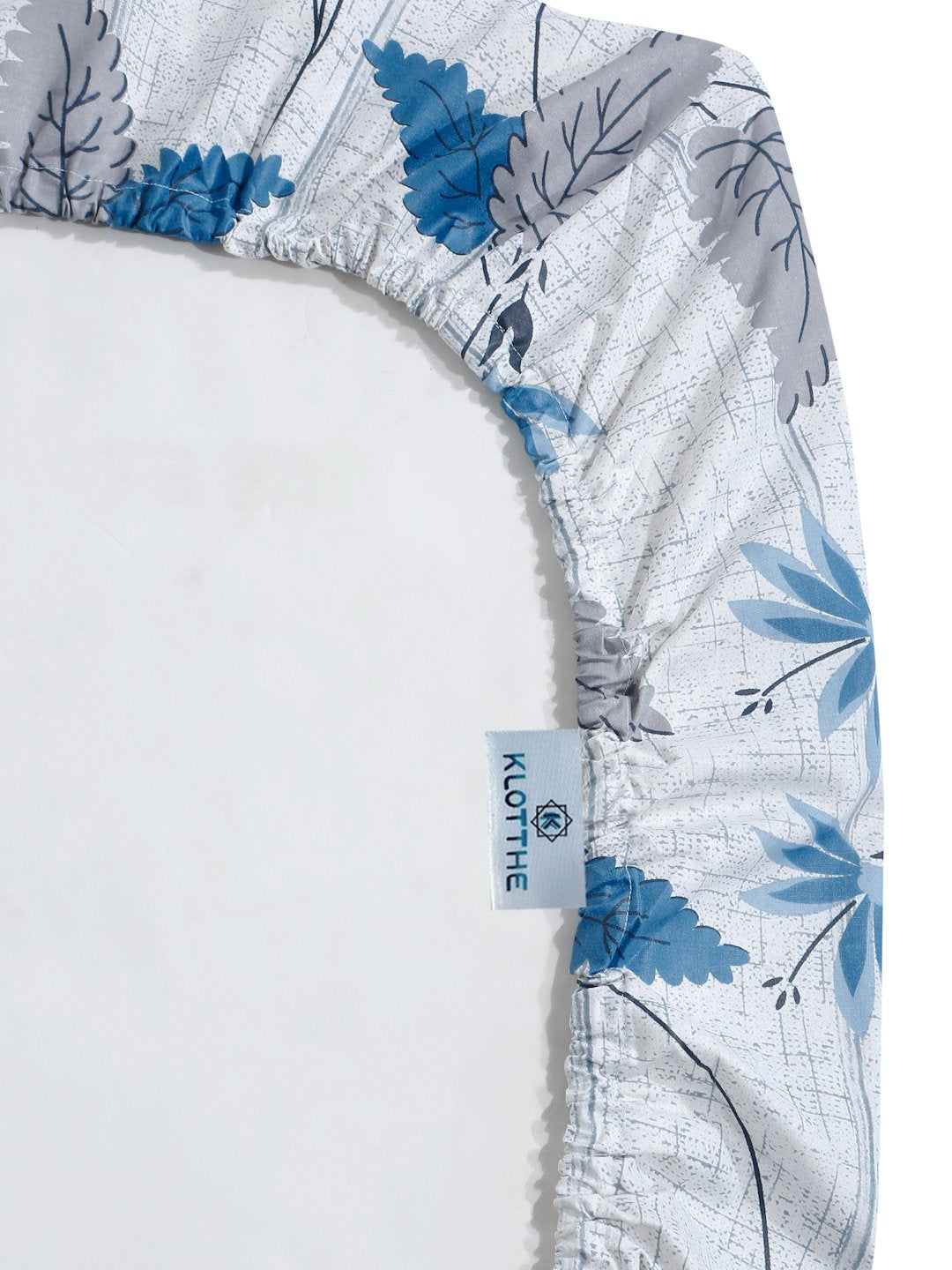 Set Content- Klotthe Blue Floral 400 TC Pure Cotton Fitted Double Bedsheet with 2 Pillow Covers