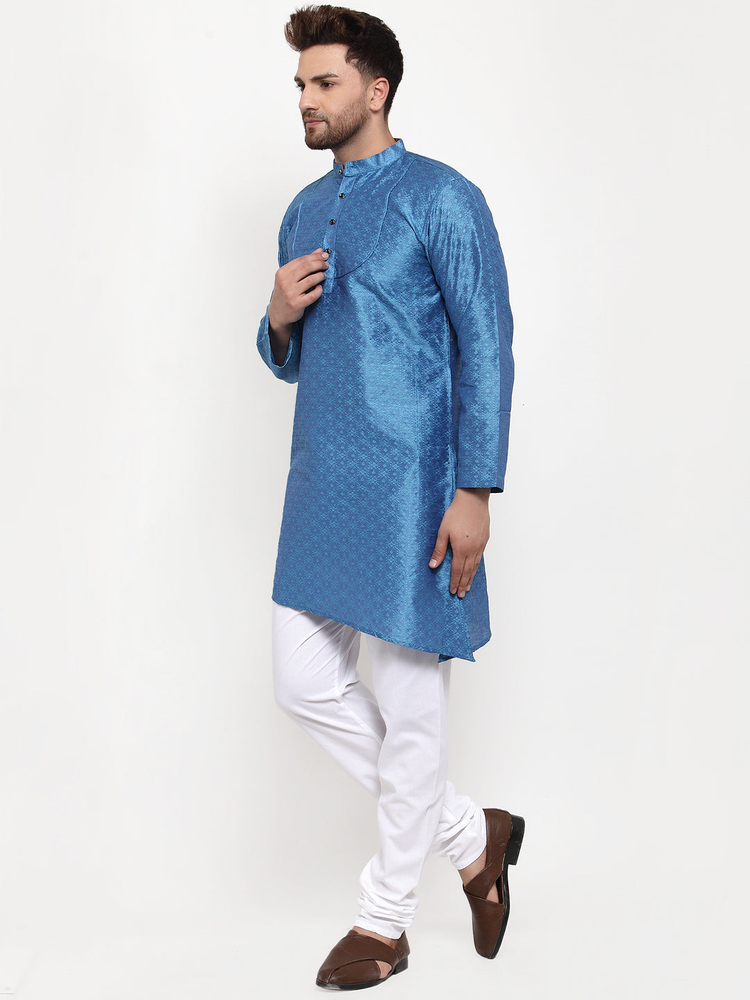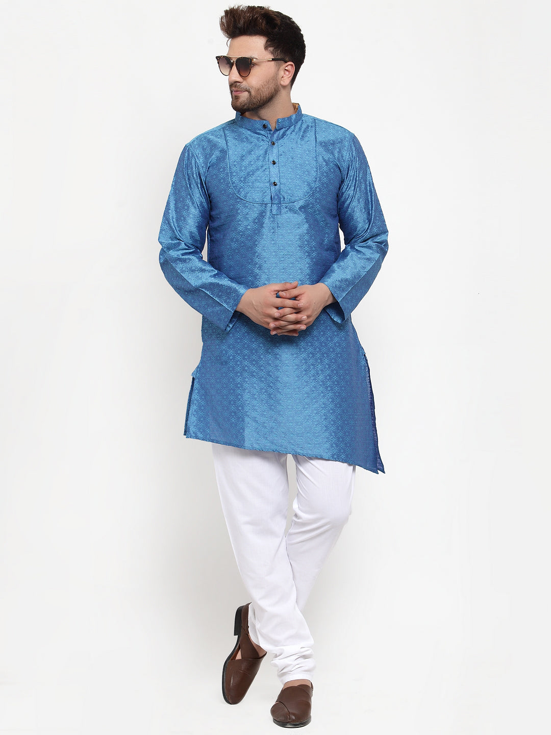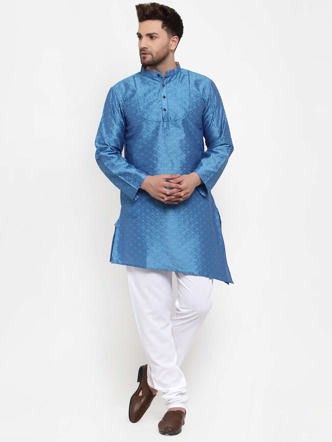 KLOTTHE Blue Cotton Self Design Kurta With Pyjama