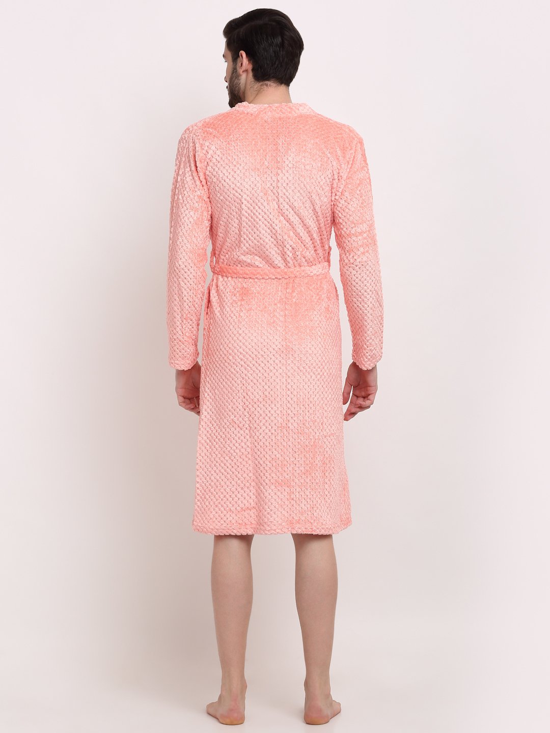 Men Orange Self Design Wool Bath Robe With Belt