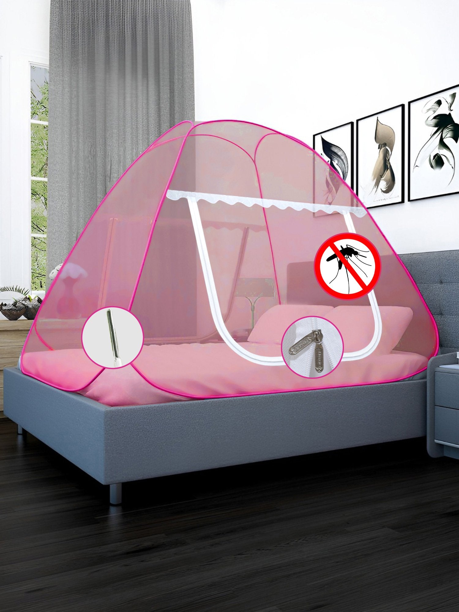 Set Content-Klotthe Pink King Size Washable Foldable Mosquito Net