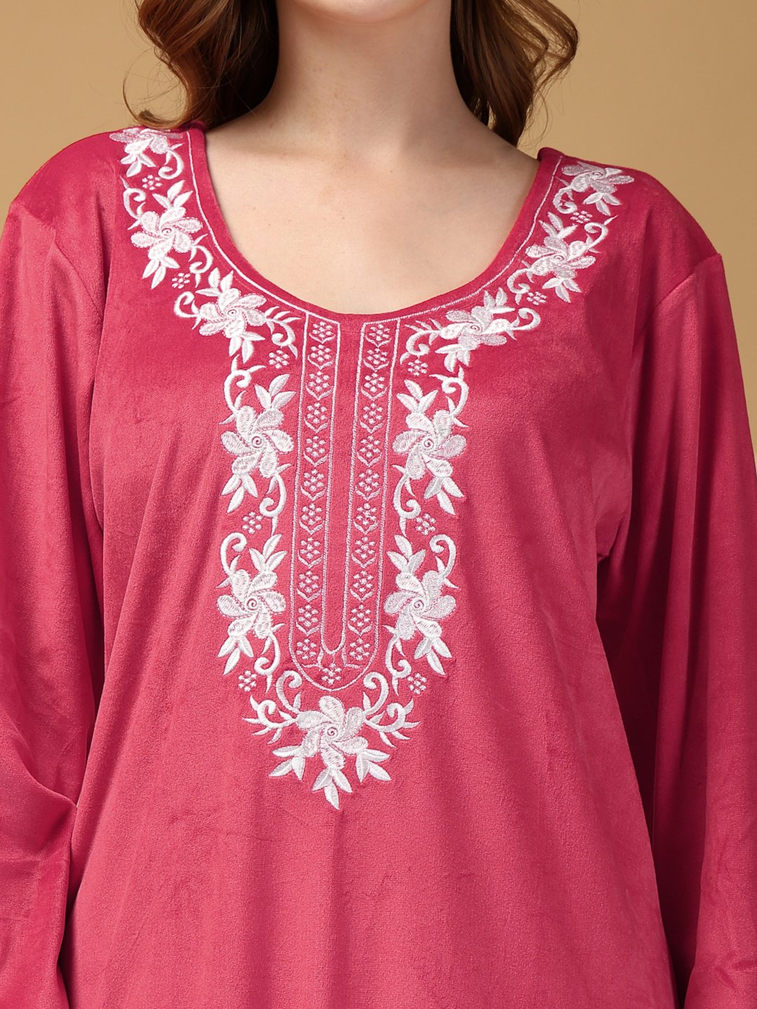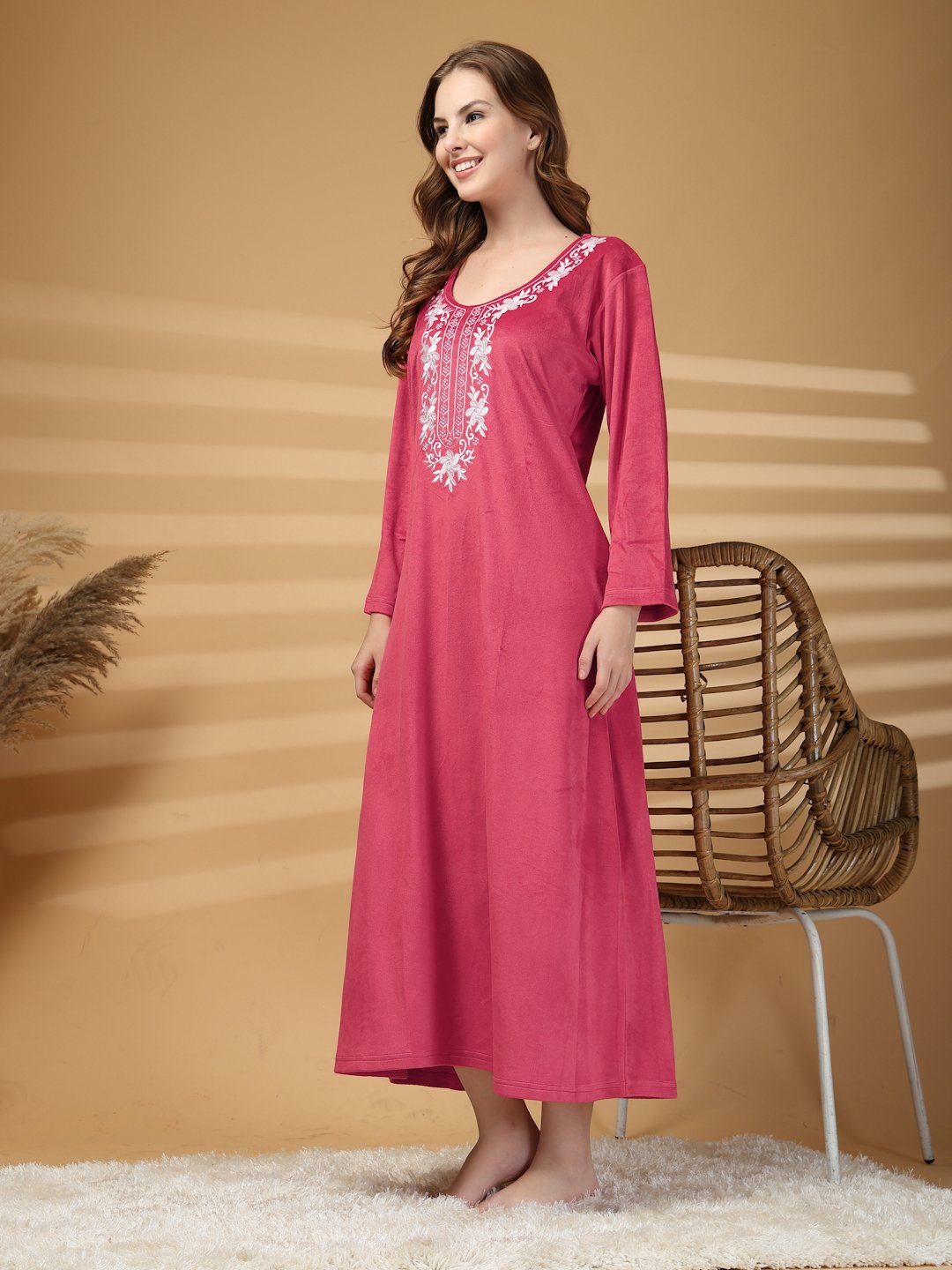 Klotthe Red Solid Soft touch Velvet Maxi Nightdress