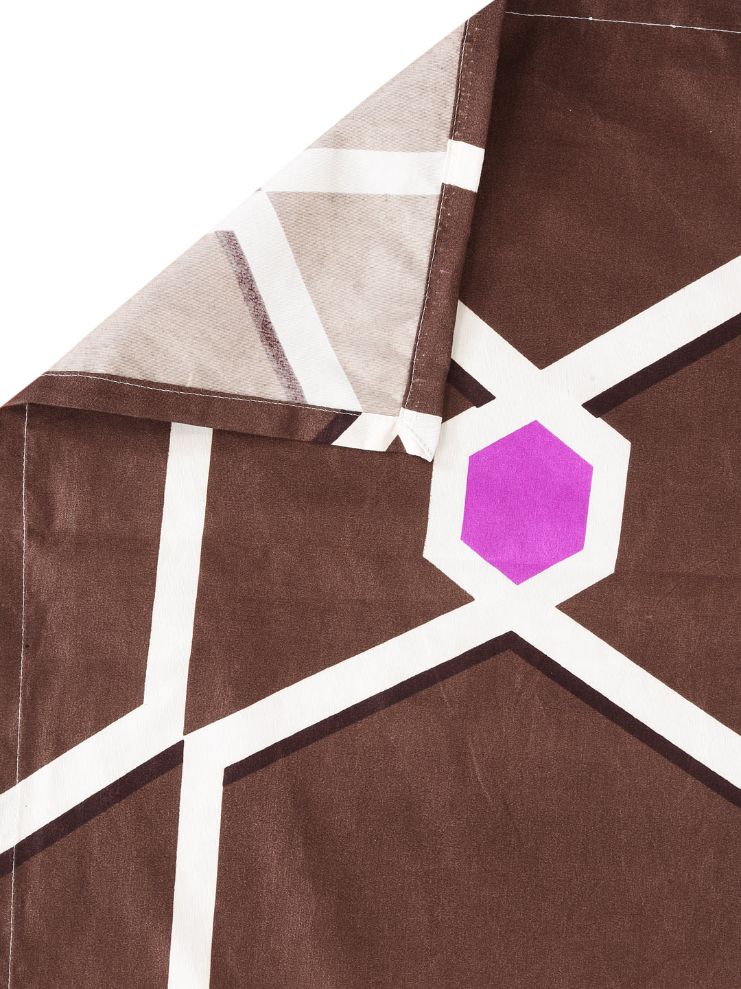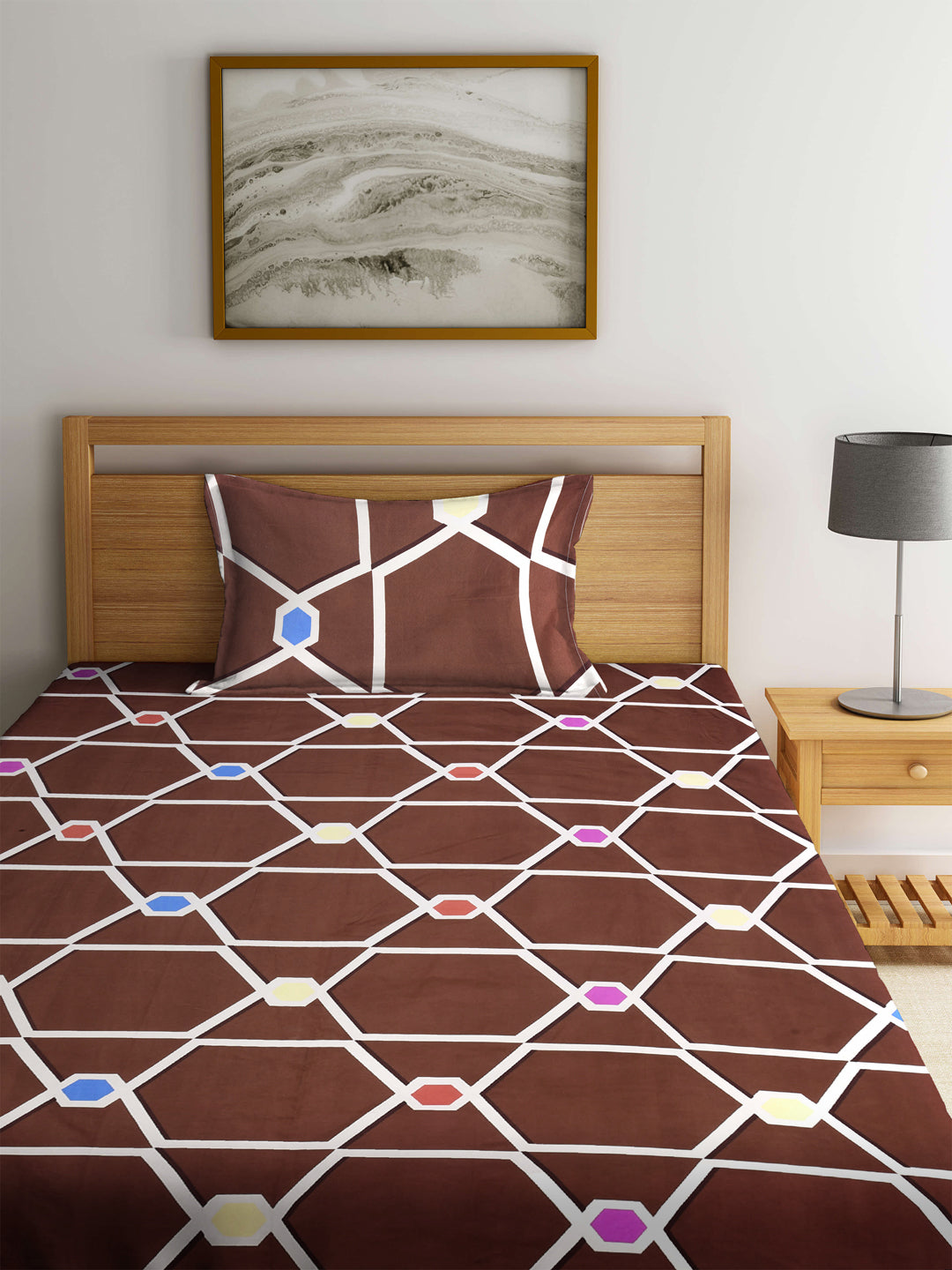 Klotthe Brown Geometric Cotton Blend Single Bedsheet with Pillow cover