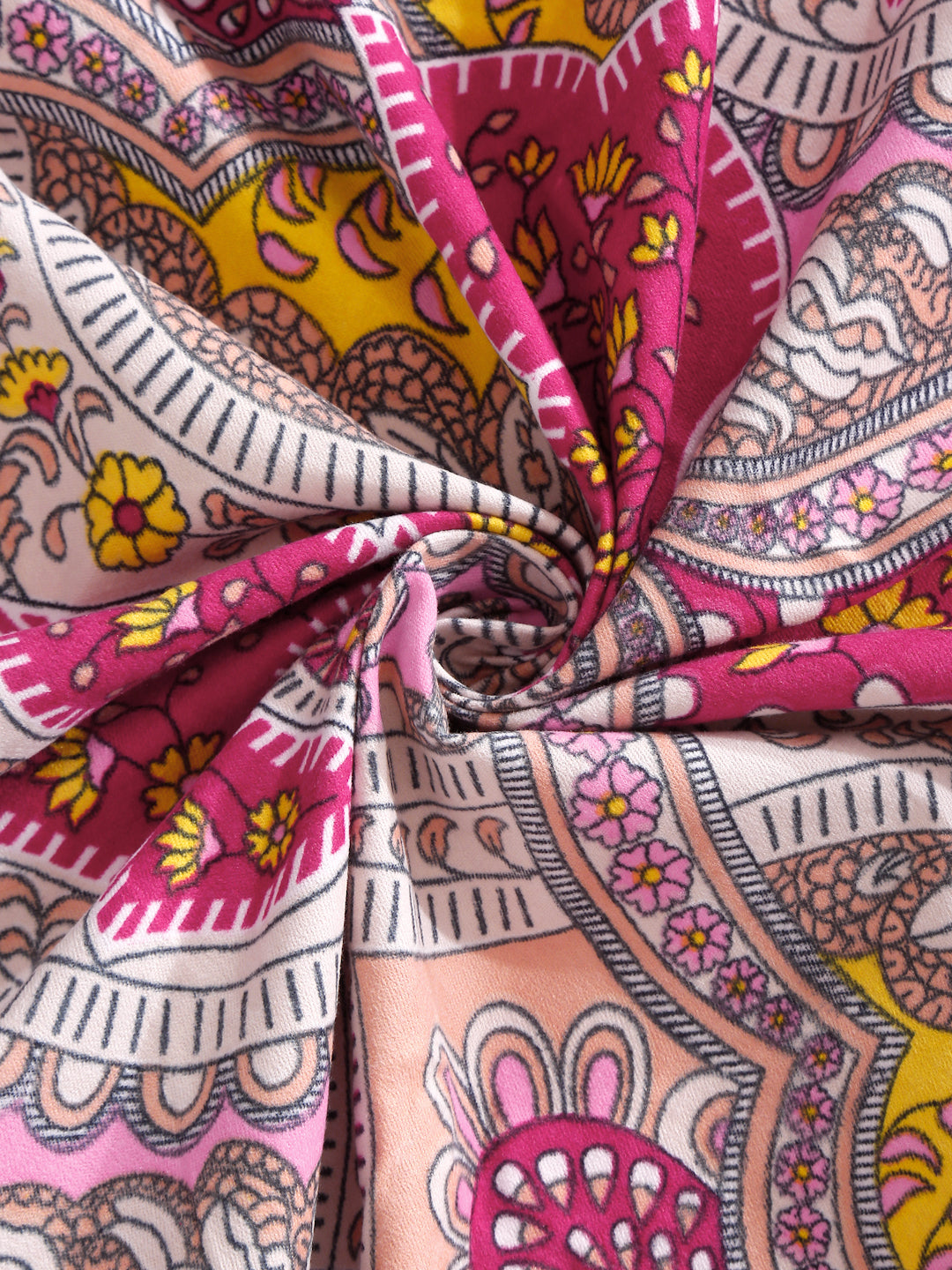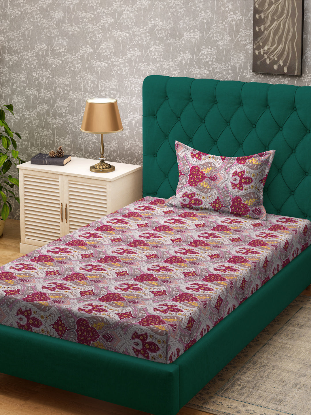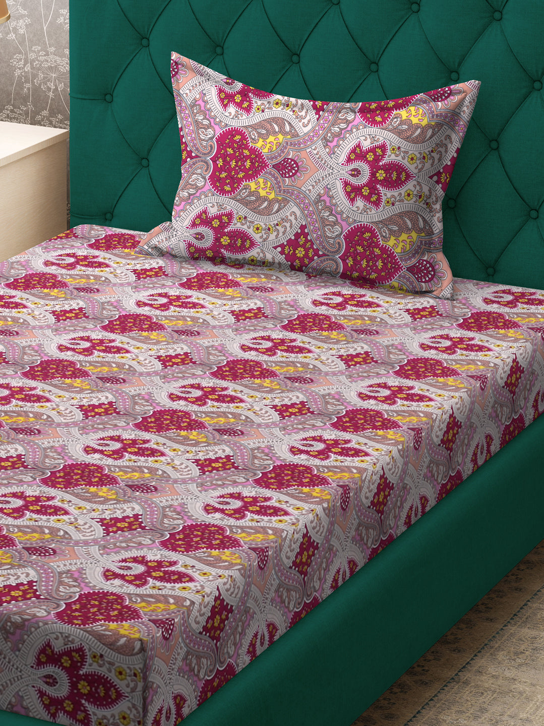 Klotthe Red Ethnic Motifs 300 TC Cotton Blend Single Bedsheet with Pillow Cover